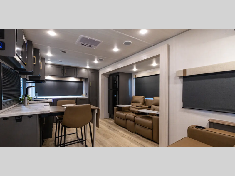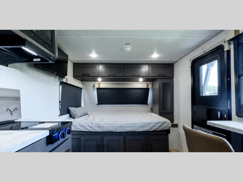 Each is built with a fully walkable PVC roof, a welded aluminum structure, and an enclosed underbelly with forced heat and radiant foil insulation for added protection against the elements. There are premium window treatments inside, along with convenient motion lighting, a 4-speed high powered bath fan, and more comforts. The optional Black Canyon Beast Mode Package can be added if you want an independent suspension, 400-watt solar panel, fresh water filter, and Maxxair roof vent cover.