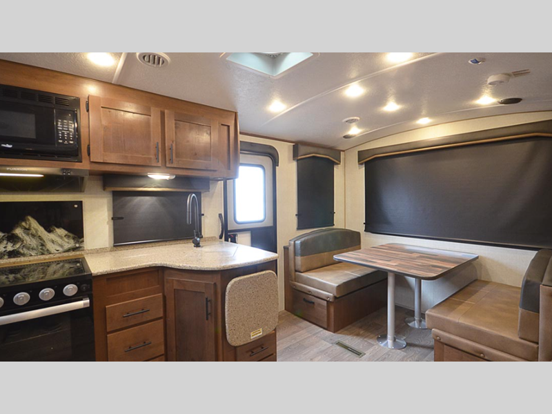 Sleeps 5 Slides 1 Length 28 ft 8 in Ext Width 8 ft Ext Height 11 ft 7 in Int Height 6 ft 11 in Interior Color High Desert, Western Sunrise Hitch Weight 800 lbs GVWR 9995 lbs Dry Weight 6775 lbs Cargo Capacity 3220 lbs Fresh Water Capacity 80 gals Grey Water Capacity 80 gals Black Water Capacity 40 gals Tire Size ST235/80/16E Furnace BTU 35000 btu Available Beds Queen Refrigerator Type 12V Off Grid Refrigerator Size 10 cu ft Cooktop Burners 3 Number of Awnings 1 Axle Weight 5100 lbs LP Tank Capacity 30 lbs Water Heater Capacity 10 gal TV Info LR 32" Swing-Out TV Awning Info 20' Axle Count 2 Number of LP Tanks 2 Shower Type Tub/Shower Combo Similar Floorplans