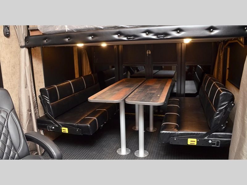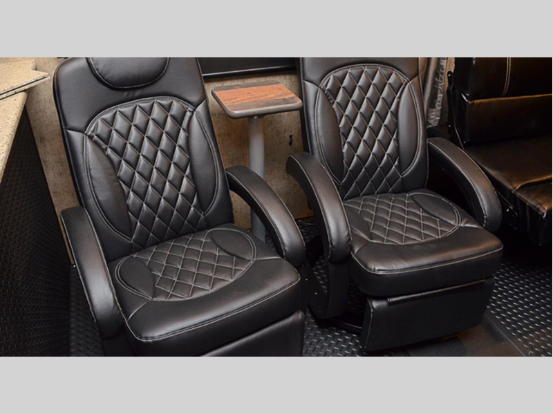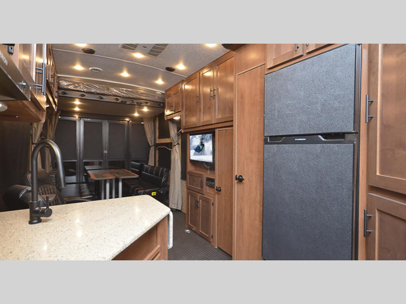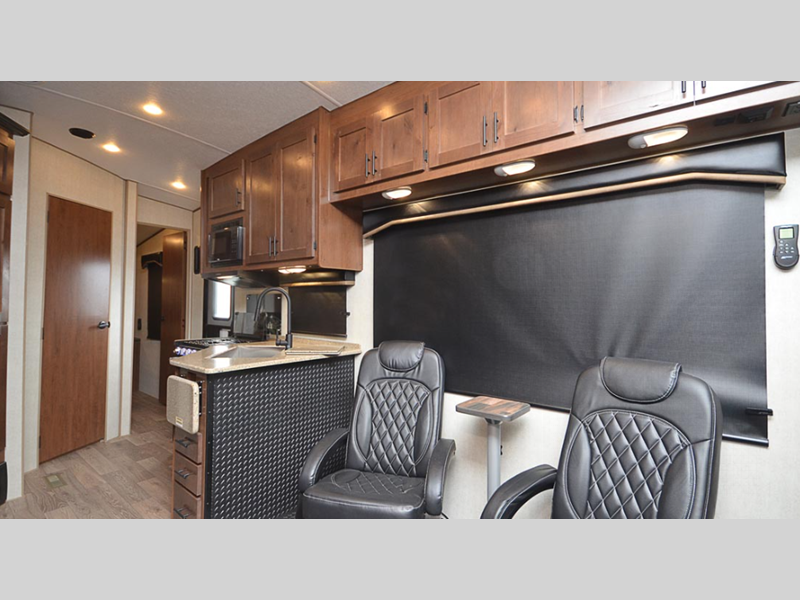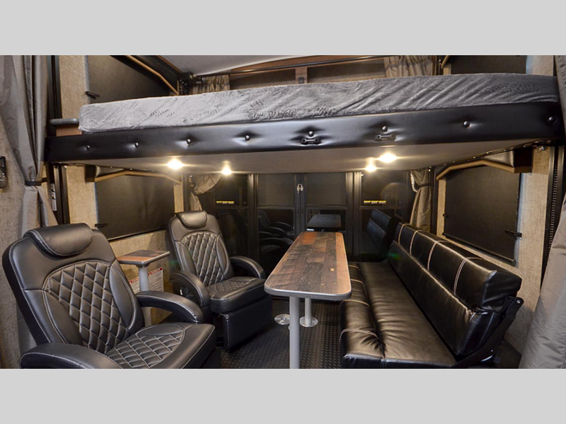 Each model comes standard with a 400 watt solar system, a 4K on-board generator, and 40 gallon fuel station to keep your toys ready to go when you are. The 'Fast Ramp" will make unloading easier than ever, and the patio railing kit with steps and rear awning will let host parties. There are also mountain extreme thermal pane windows, a unique heated insulated holding tank design, an XL furnace, and more features designed for four seasons of camping!