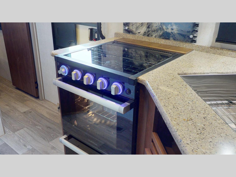 Sleeps 6 Length 35 ft 9 in Ext Width 8 ft 4 in Ext Height 13 ft 2 in Interior Color Black Diamond Hitch Weight 1600 lbs GVWR 13995 lbs Dry Weight 9620 lbs Cargo Capacity 4375 lbs Fresh Water Capacity 100 gals Grey Water Capacity 65 gals Black Water Capacity 40 gals Tire Size LT235/80/16G Furnace BTU 35000 btu Generator Cummins Onan 4K On-Board Gas Fuel Capacity 40 gals Number Of Bunks 1 Available Beds Queen Refrigerator Type Off Grid 12V Refrigerator Size 10 cu ft Number of Awnings 2 Axle Weight 6800 lbs Garage Size 13 ft 4 in LP Tank Capacity 60 lbs Water Heater Capacity 10 gal Water Heater Type LP/110V DSI AC BTU 15000 btu TV Info LR 32" LED HDTV Awning Info 21' Electric w/LED Light Strip, Rear Axle Count 2 Shower Type Neo-Angled Electrical Service 30 amp Similar Floorplans