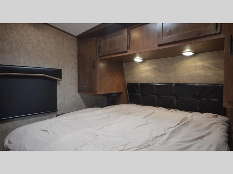Sleeps 6 Length 33 ft 2 in Ext Width 8 ft 4 in Ext Height 13 ft 2 in Interior Color Black Diamond Hitch Weight 1450 lbs GVWR 13995 lbs Dry Weight 9400 lbs Cargo Capacity 4595 lbs Fresh Water Capacity 100 gals Grey Water Capacity 65 gals Black Water Capacity 40 gals Tire Size LT235/85/16G Furnace BTU 35000 btu Generator Cummins Onan 4K On-Board Gas Fuel Capacity 40 gals Number Of Bunks 1 Available Beds Queen Refrigerator Type Off Grid 12V Refrigerator Size 10 cu ft Number of Awnings 1 Axle Weight 6800 lbs Garage Size 10 ft 10 in LP Tank Capacity 60 lbs Water Heater Capacity 10 gal Water Heater Type LP/110V DSI AC BTU 15000 btu TV Info LR 32" LED HDTV Awning Info 20' Electric w/LED Light Strip, Rear Axle Count 2 Shower Type Neo-Angled Electrical Service 30 amp Similar Floorplans
