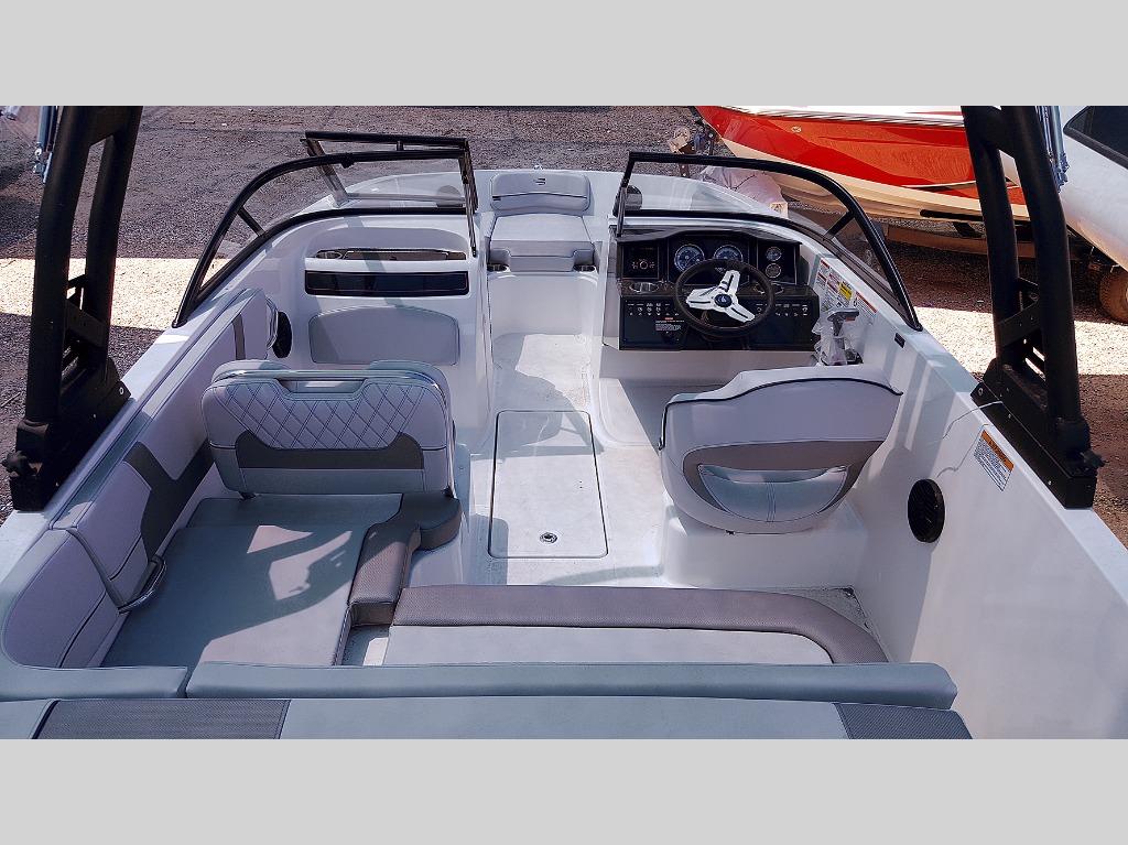 This Bayliner VR Series VR5 features an overall length of 20' 7" with maximum capacity of 8 or 1,790 lbs. The BeamForward design carries the 8 feet of beam further forward in the boat that has been done traditionally. The self-bailing cockpit has an increased aft seating area with a swim platform at the end of the running surface keeping the platform separate from the usable interior space. The helm seat includes 180-degree swivel function to be able to face the port-side companion seat, and the integrated cooler is a nice touch. You might even like to add a few options to enhance your experience such as choosing an even faster engine, the lighting package, a single or double wakeboard rack, and/or the stainless steel package, plus more.