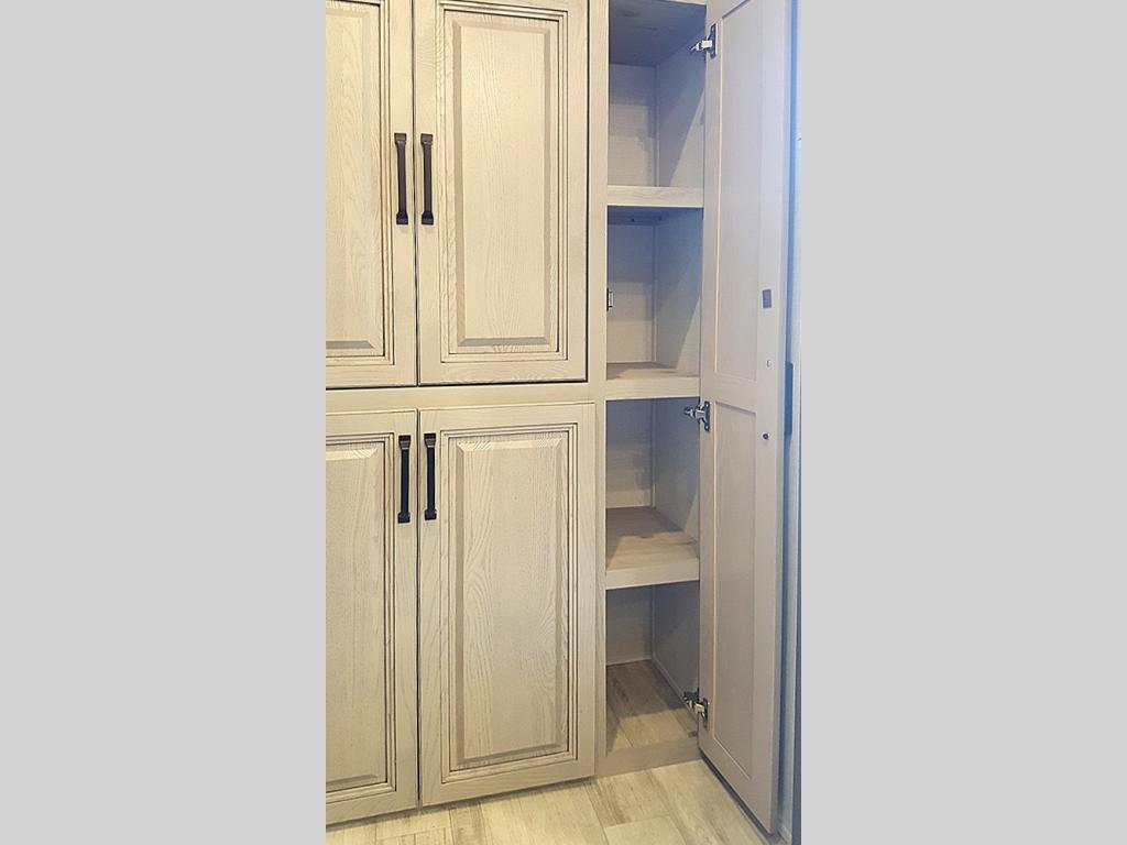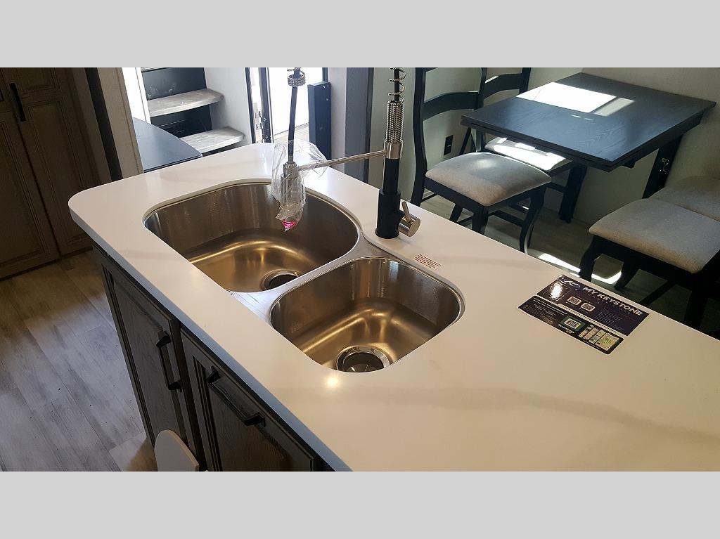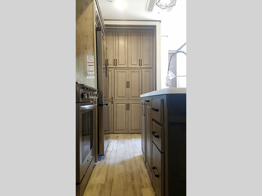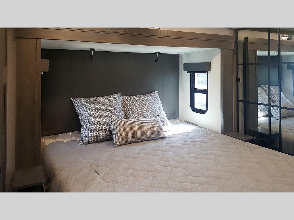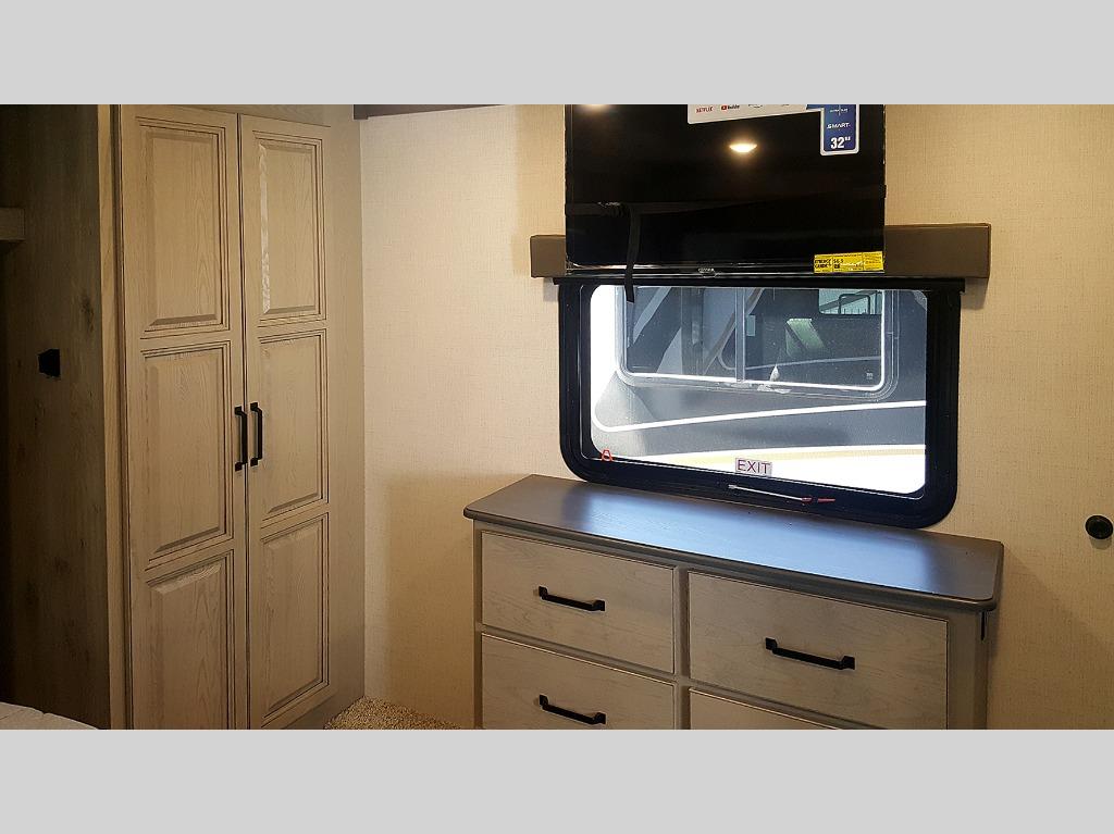 Get ready for family fun in this fifth wheel offering a front master bedroom with a king-size bed slide, plus a second master bedroom for your guests! The second bedroom includes a queen-size bed slide and a spacious rear full bathroom with a private entry/exit. The open concept main living and kitchen area offers dual opposing slides which includes theater seating, a free standing dinette, a fireplace, a center island and walk-in pantry. These full kitchen amenities are sure to make meal prep and cooking easy, especially with a convection microwave, Insignia kitchen appliances, and an 18 cu. ft. residential refrigerator with an ice maker.