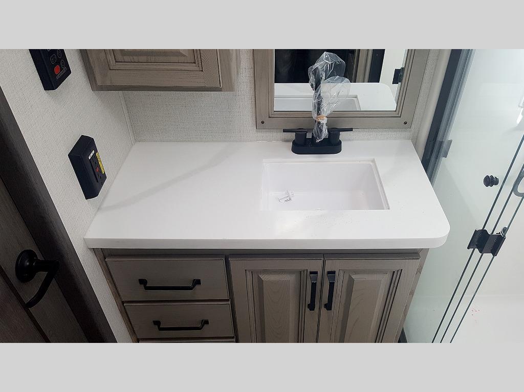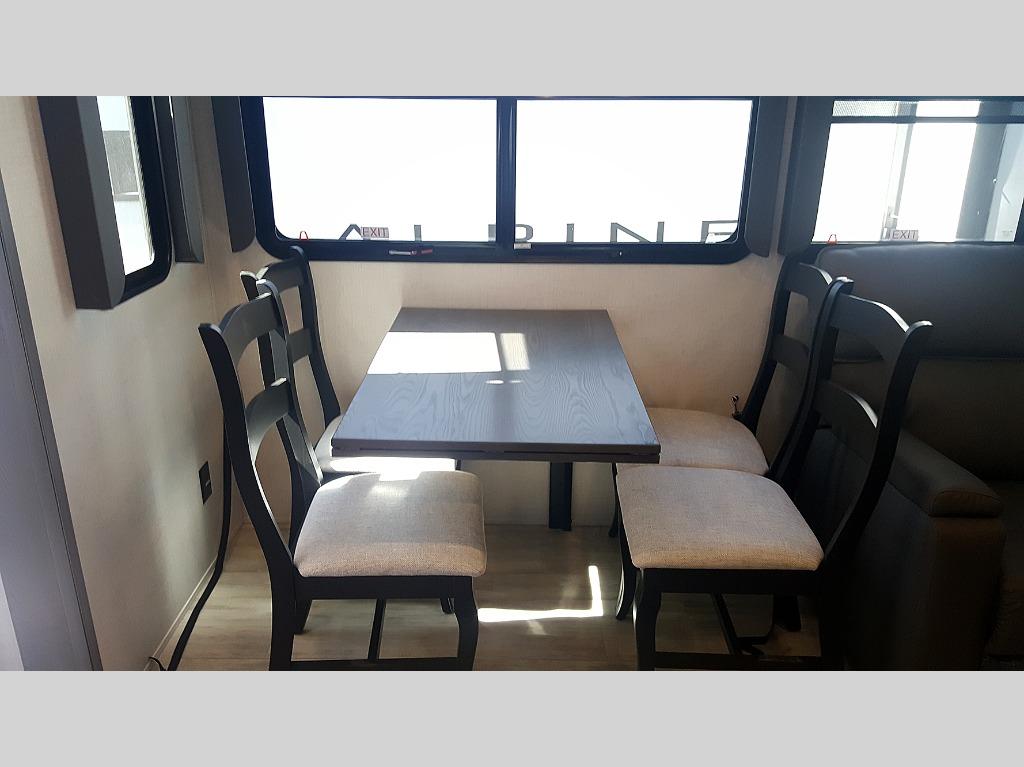 Luxury is not an option, it is a standard with each one of these Keystone RV Alpine fifth wheels! A 8' 4" wide body construction will create an open, residential feeling, and cutting-edge technology will provide a hassle-free camping experience. The Tru-Fit slide construction is more durable and minimizes motor structural stress, as well as resists leaking, and the Blade Pure airflow system provides residential comfort with its high-performance. Each fifth wheel includes designer flooring throughout, stunning solid wood cabinet doors, luxurious crown molding, and solid surface countertops in the kitchen. The SolarFlex Protect 200 comes standard or you can choose the optional SolarFlex Discover 440i for even more off-grid capabilities. The exterior also includes an outside shower with hot and cold water, Lippert strut assisted SolidSteps, Hitch Vision with LED lighting, and many more conveniences!