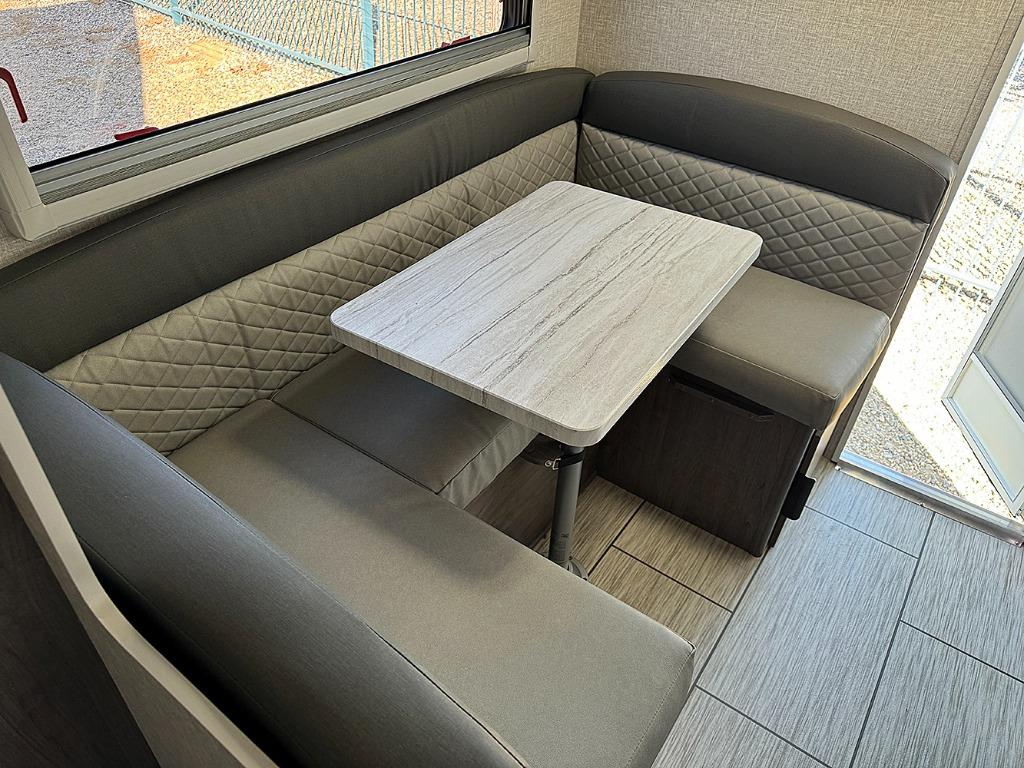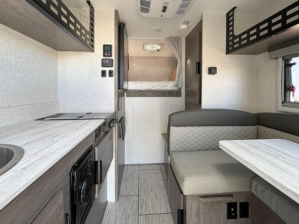 U-Shaped Dinette, Two Burner Cooktop, Front Queen-Size Bed & Clothing Closet
