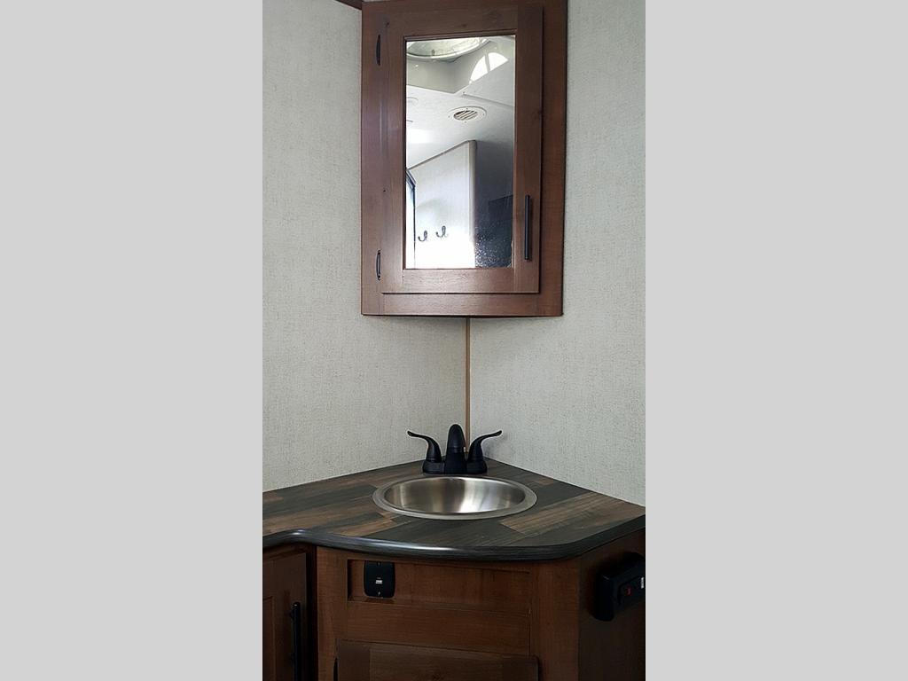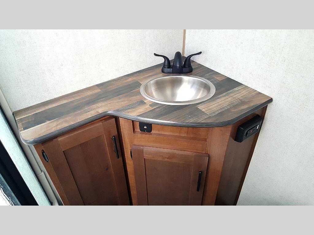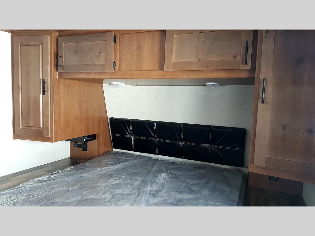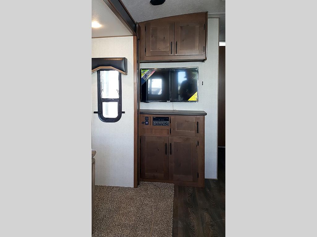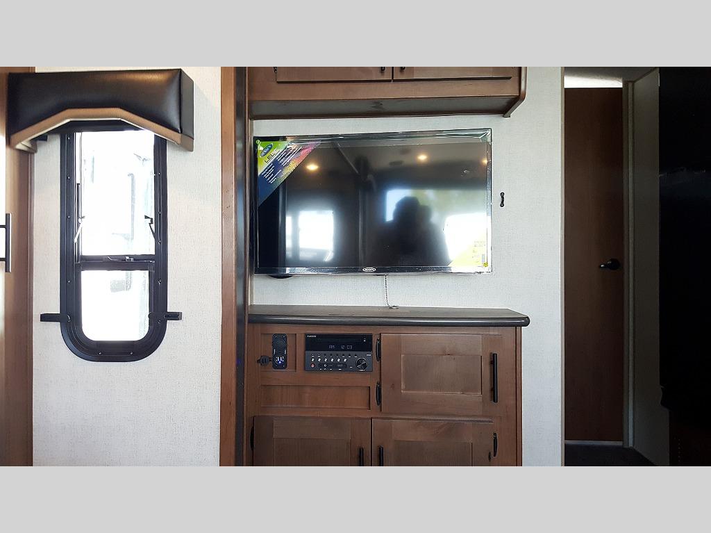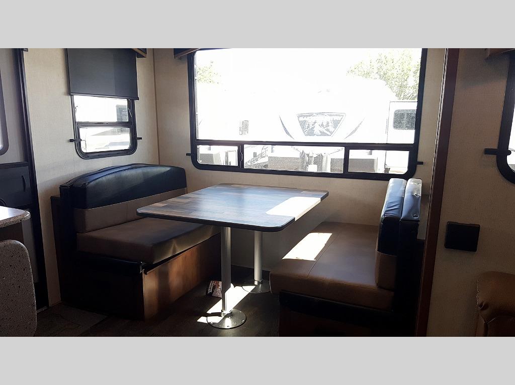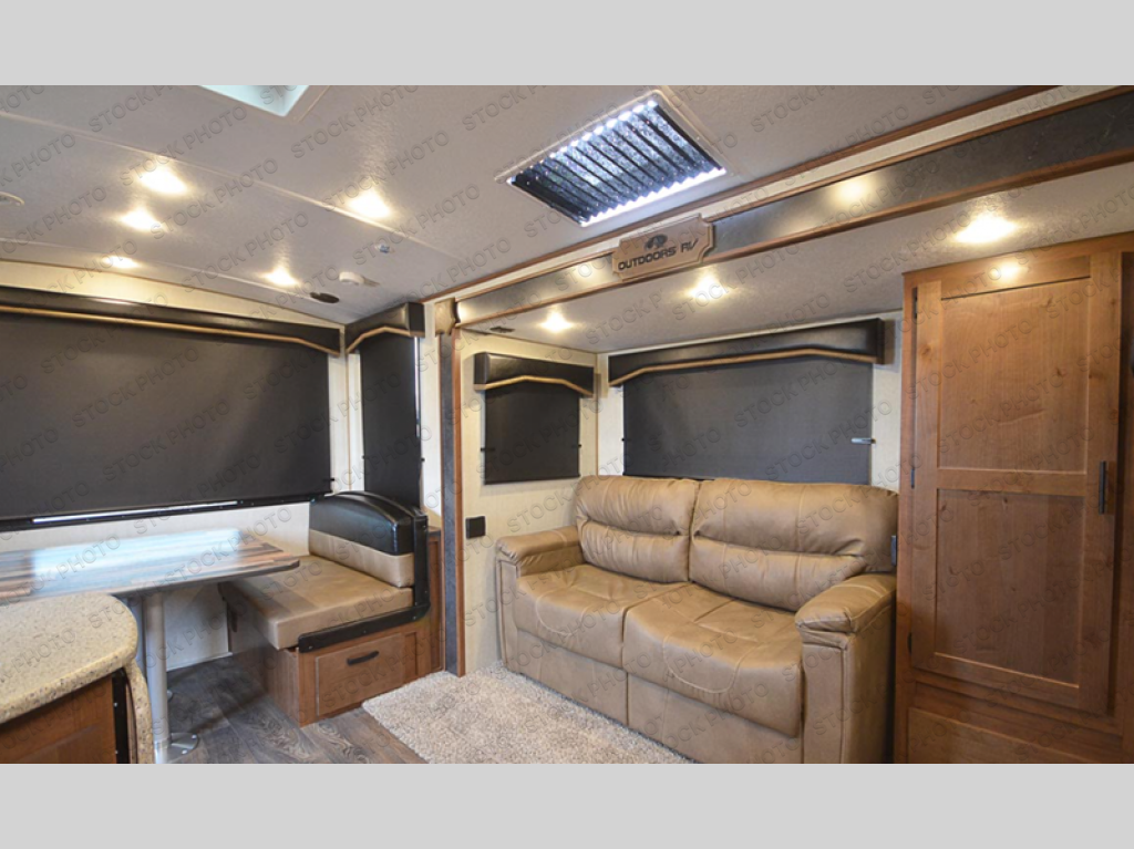 Camping trips are made complete when you have this travel trailer in tow. The rear mountain dinette provides a place to enjoy meals together, and the sleeper sofa slide out is close to the entertainment center for easy viewing of your movies. And if you're not needing the extra sleeping space, you can choose the optional residential sofa with built-in recliners! The chef of your group can prepare home-cooked meals in the kitchen, especially with a flip-up counter for more space. There is also a pantry, sunken range, 8 cu. ft. XL refrigerator, plus a high-rise pull out faucet for easy clean up. The full bath is towards the front of the unit where you'll find the private bedroom, complete with a queen bed and plenty of storage space for clothes, shoes, and more!