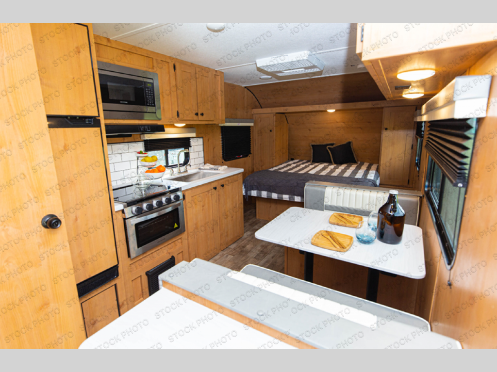 Each Retro travel trailer by Riverside RV will take you back in time with its vintage look, but will still impress you with its modern comforts. The Alpha Super Flex roof system and powder coated chassis provide durability, along with the diamond plate rock guard and reinforced galvanized steel wheel well. You'll enjoy indoor and outdoor speakers, USB ports for your electronics, plus an AM/FM/Bluetooth stereo to play your favorite tunes. New interior features include an Indratech high performance mattress, roller blinds, upgraded black faucets, and convenient sink covers that provide more counter space. Outside, you'll find a friction hinge entry door, a GE 15k rooftop A/C, and enlarged cargo doors with slam latch so you can easily load up your gear.