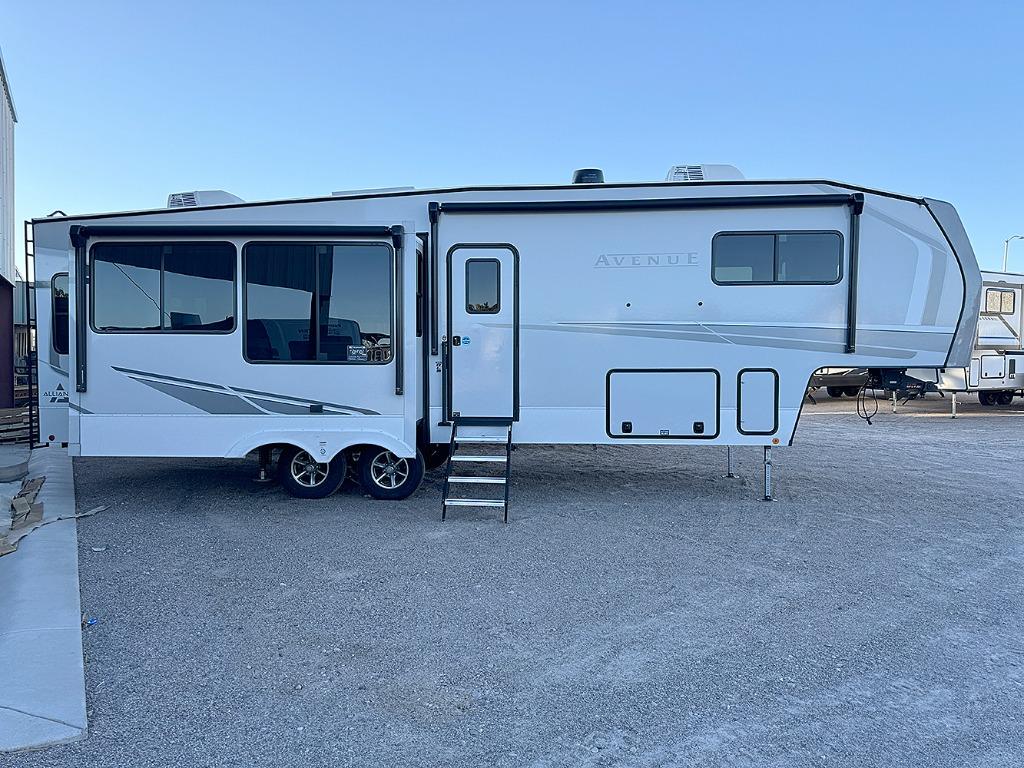 With any Avenue fifth wheel or travel trailer by Alliance RV, you will enjoy more interior space provided by the 8' 5" wide-body construction, and a long list of luxury features. Each is built with Azdel composite sidewalls both inside and out, along with a PVC roof for added strength. There are innovative storage solutions that include hidden storage behind the TV, within end tables and ottomans, and more. Since these units feature no carpet throughout, cleaning will be easier than ever, and there are flush floor slides throughout for seamless living spaces. The Avenue also comes with the OTG Solar Package with a 400 watt solar panel, inverter prep, multiple outlets, and more to keep you charged up!