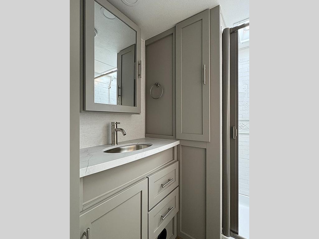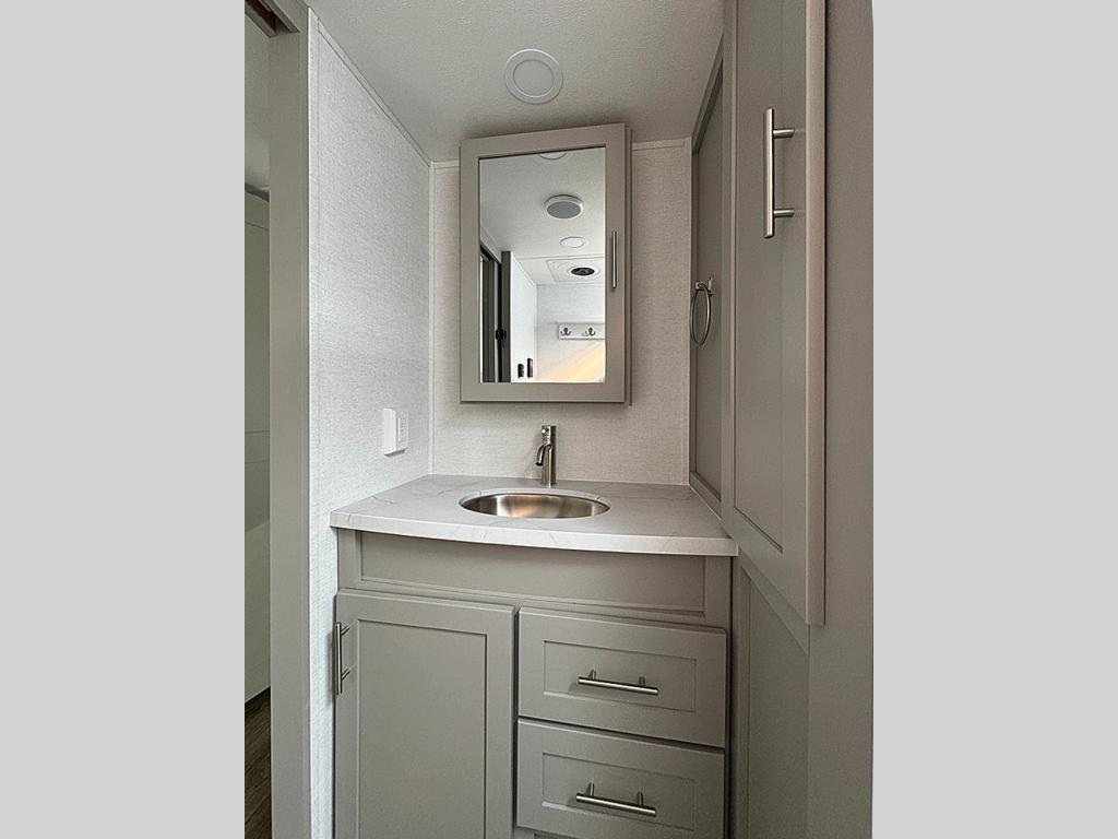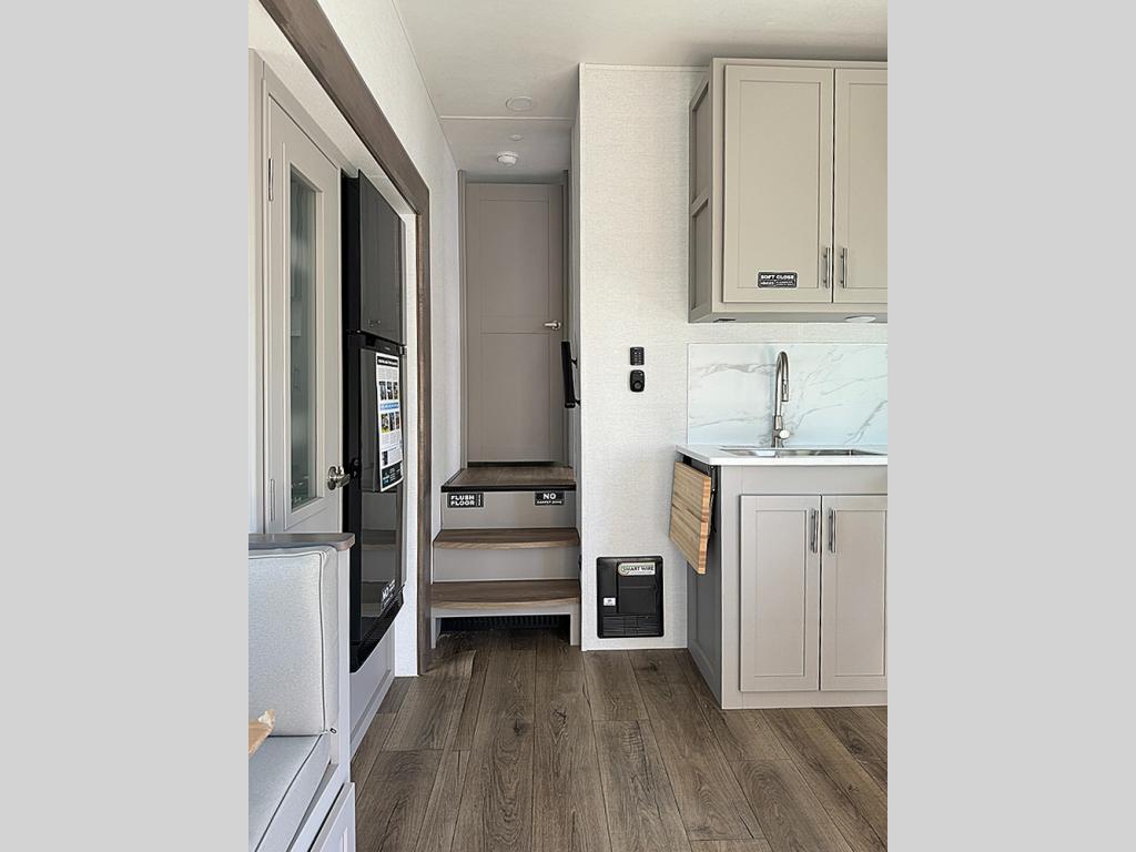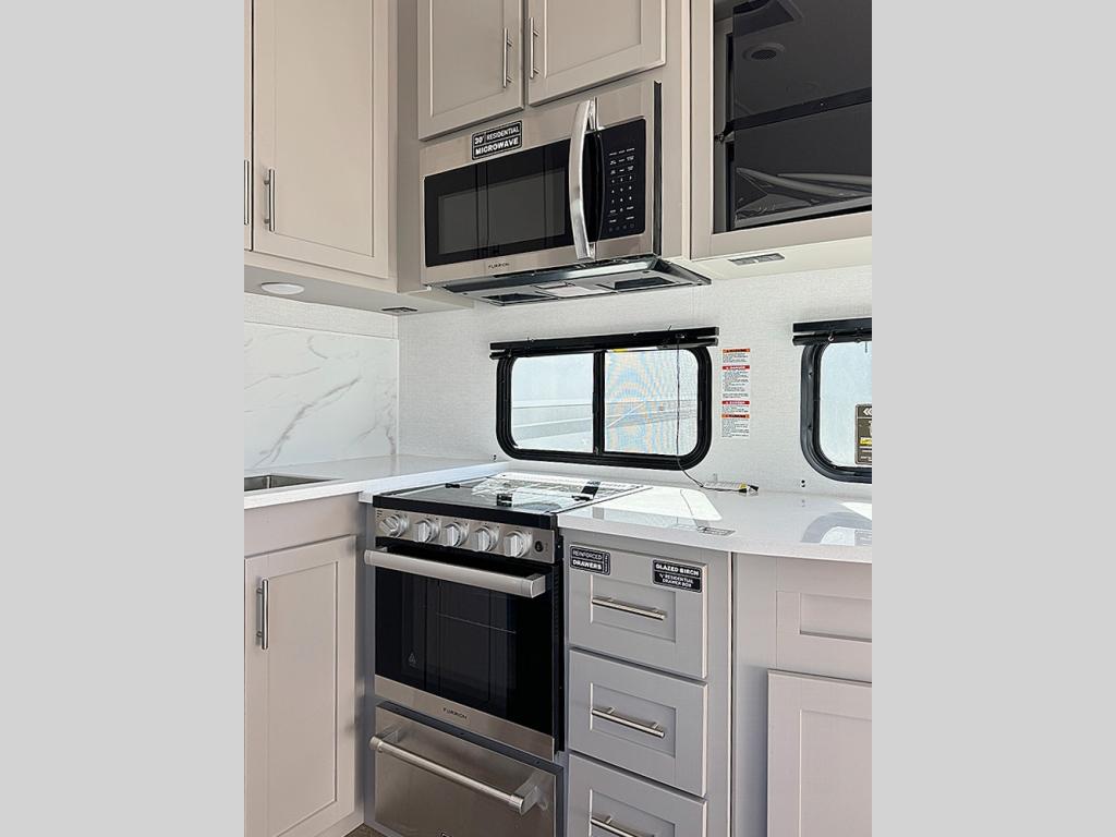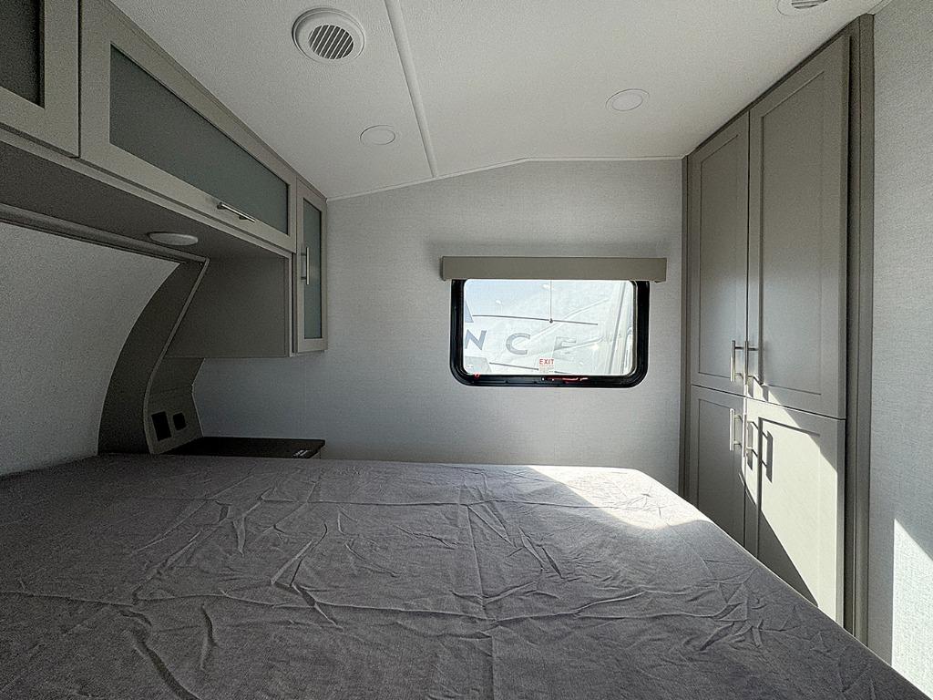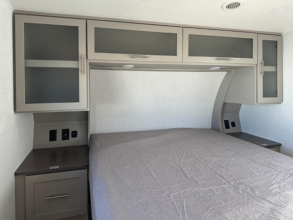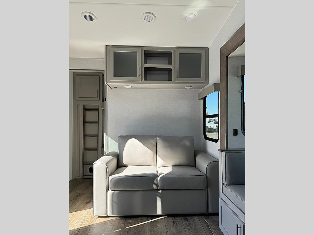 Your family will enjoy traveling in this bunk model including two 42" x 74" bunks featuring storage beneath that can be accessed from outside using the bike storage door, or by lifting up the lower hinged bunk from inside. The combined living room and kitchen area is spacious thanks to the large slide which houses the floating dinette table, 10 cu. ft. 12V refrigerator, and pantry. There is more seating adjacent to this slide. Here you will find a sofa, and all seating can easily view the swing mount 40" Class HDTV. In front, you will find a spacious side aisle bath including a 30" x 36" shower, toilet, vanity with a sink and medicine cabinet, plus linen storage as well. And don't overlook the front private bedroom with a walk-around queen bed, dual nightstands, plus a bedroom closet to keep your clothes wrinkle-free!