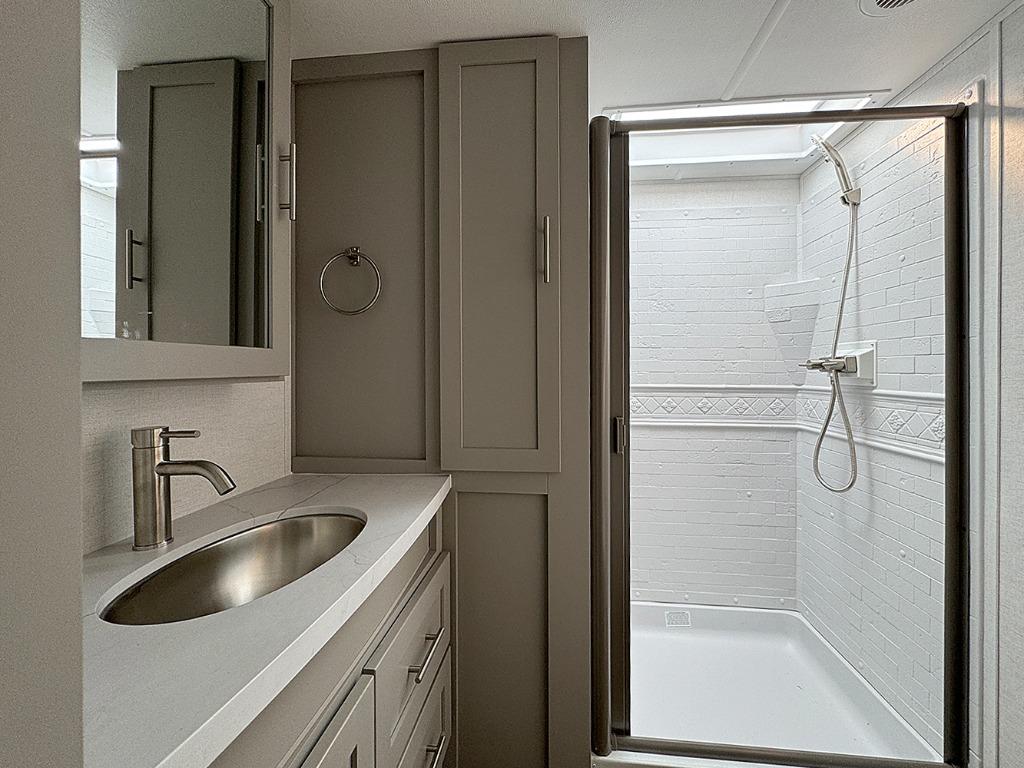 Queen Bed, Bunk Beds, Bike Storage Door, Sofa & Swing Mount 40" Class HDTV