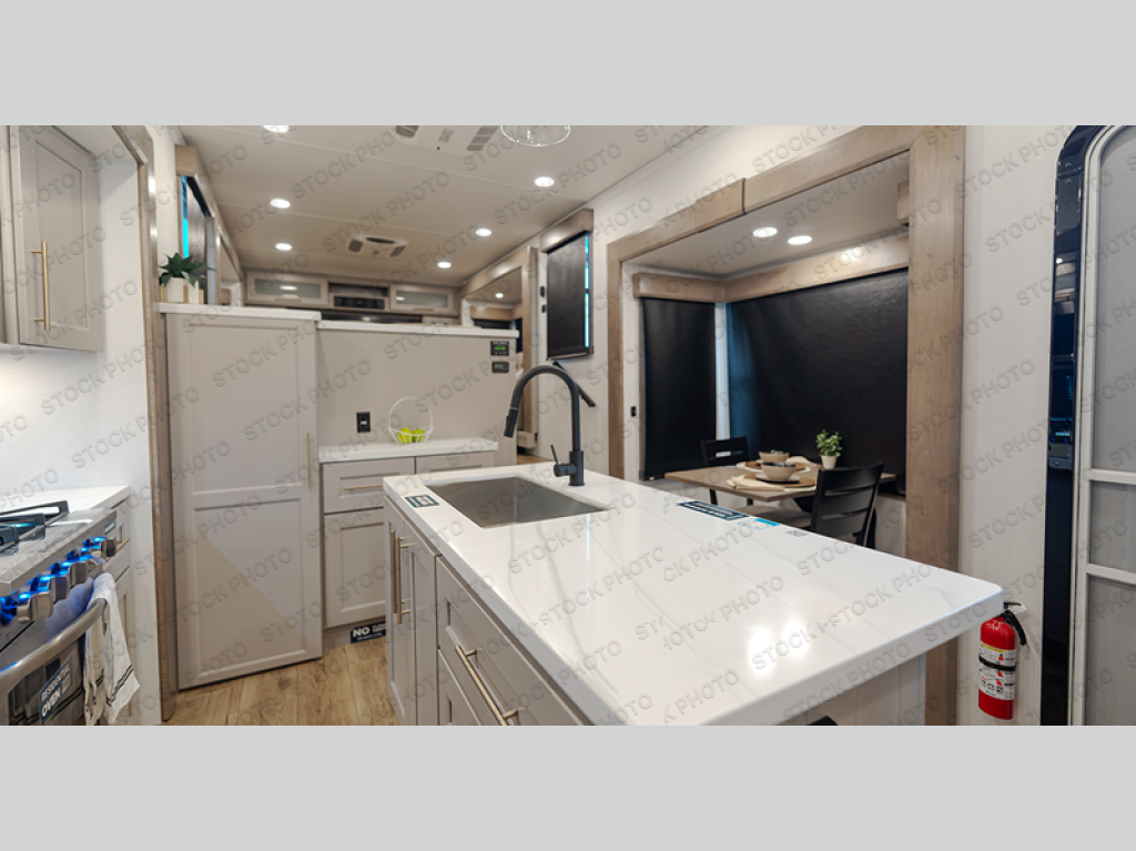 The Paradigm fifth wheels by Alliance RV are functional, high-quality, and luxurious for an unforgettable camping experience. There are three A/C units and a 40K BTU furnace to keep you comfortable year around, and you'll appreciate additional convenient amenities, like the all-in-one enclosed/heated utility center and the color coded and numbered wiring. A Rota-Flex pin box comes standard for hassle-free towing, along with Super-G 4,400 lb. rated tires and Dexter 7,000 lb. axles. You'll love the kitchen with its LG solid surface countertops and Lusso range, plus there is LED motion lighting in the pantry and a Maxx fan with a rain sensor to keep everything fresh when making dinner. Each model also includes an HD Smart TV in the living room and bedroom, plus a Winegard Air 360 antenna to keep you connected to the outside world. And of course there are a variety of options you can choose from to further customize your fifth wheel; dual pane windows, Super Solar Plus, slide out awning toppers, and generator prep or a generator to name a few!