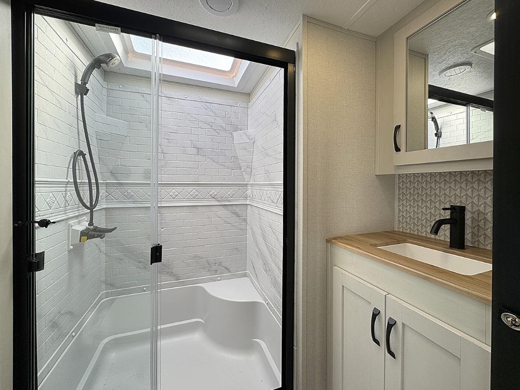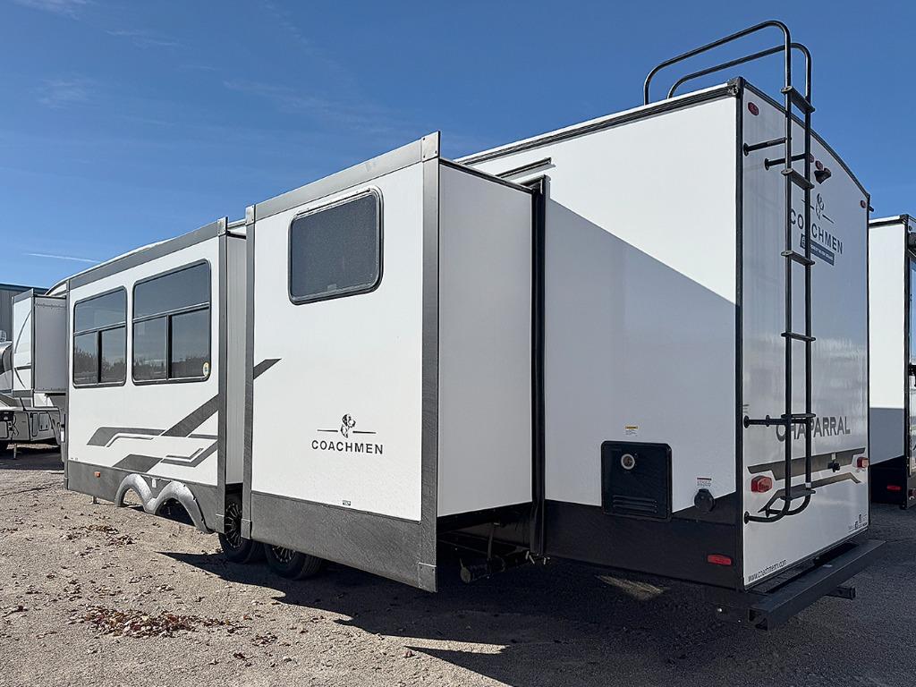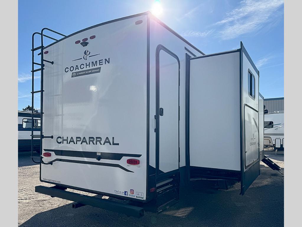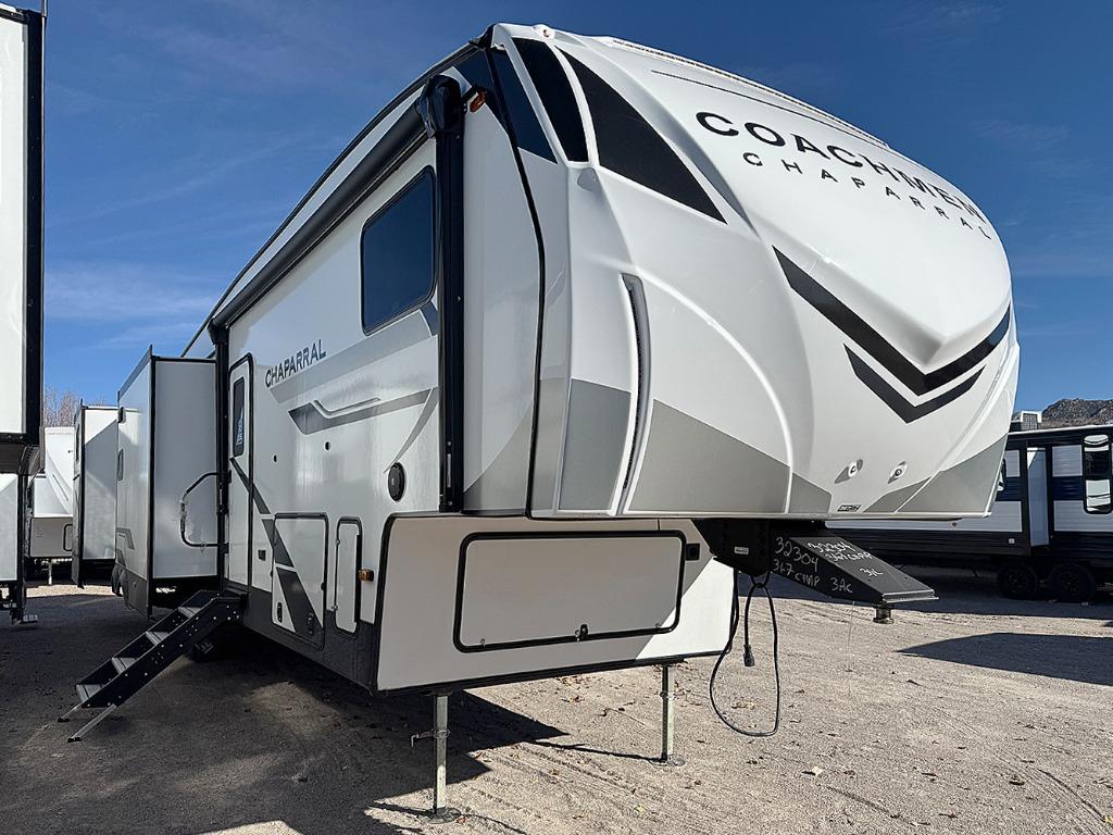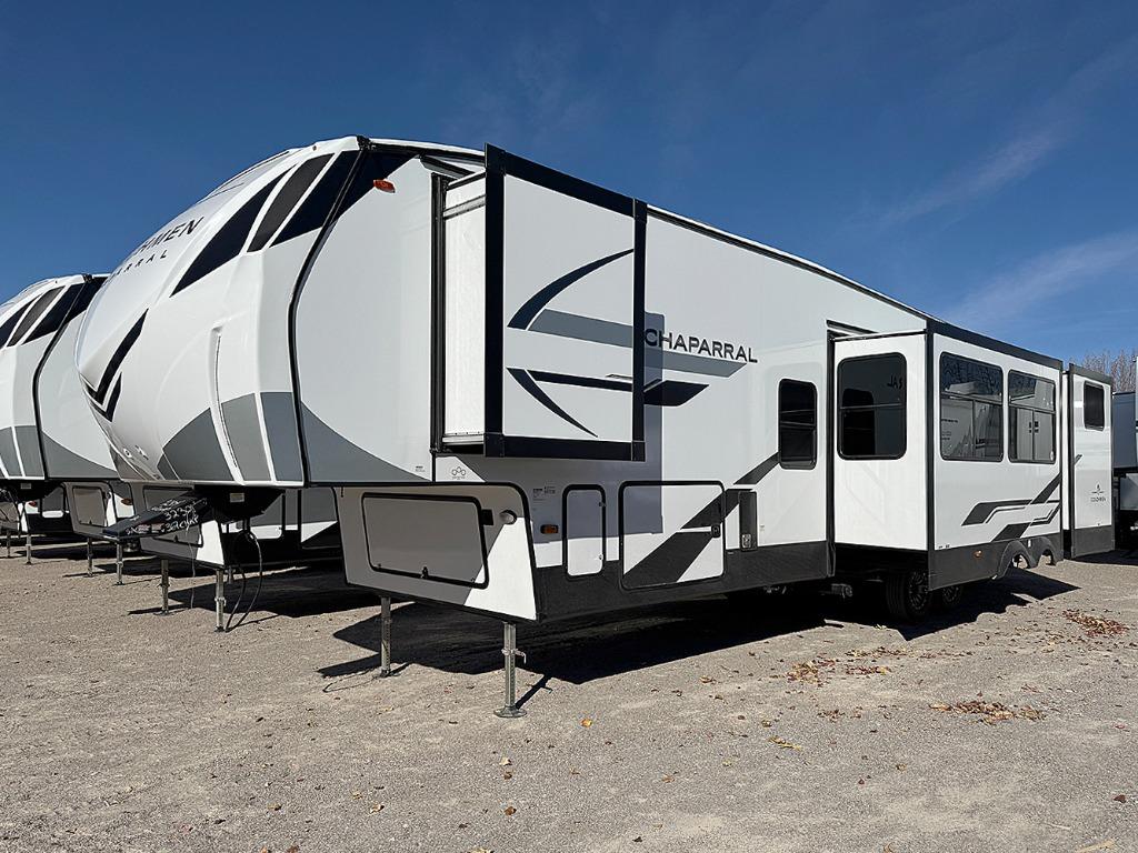 Each Chaparral mid-profile fifth wheel by Coachmen is designed with residential features, loads of storage space, and roomy bedroom suites to make you feel right at home. The durable construction means you can enjoy your RV for years to come. There's 6X double Azdel aluminum cage sidewall system, Weather Shield+ technology, and Tri-Tex powder coated frame technology that will allow you to camp year around. Each model includes a Winegard Air 360+ HDTV/radio dome antenna to help keep you connected as you camp, slow rise blackout roller night shades, a new 16 cu. ft. side-by-side stainless glass 12V refrigerator, and a modern electric fireplace to make your space cozy. There is also a large transom window in the kitchen, a modern high-rise faucet, LED motion sensor lights in the bathroom, plus a full-size shower with glass doors and a seat. Now that's what I call luxury! Choose a Chaparral fifth wheel today!