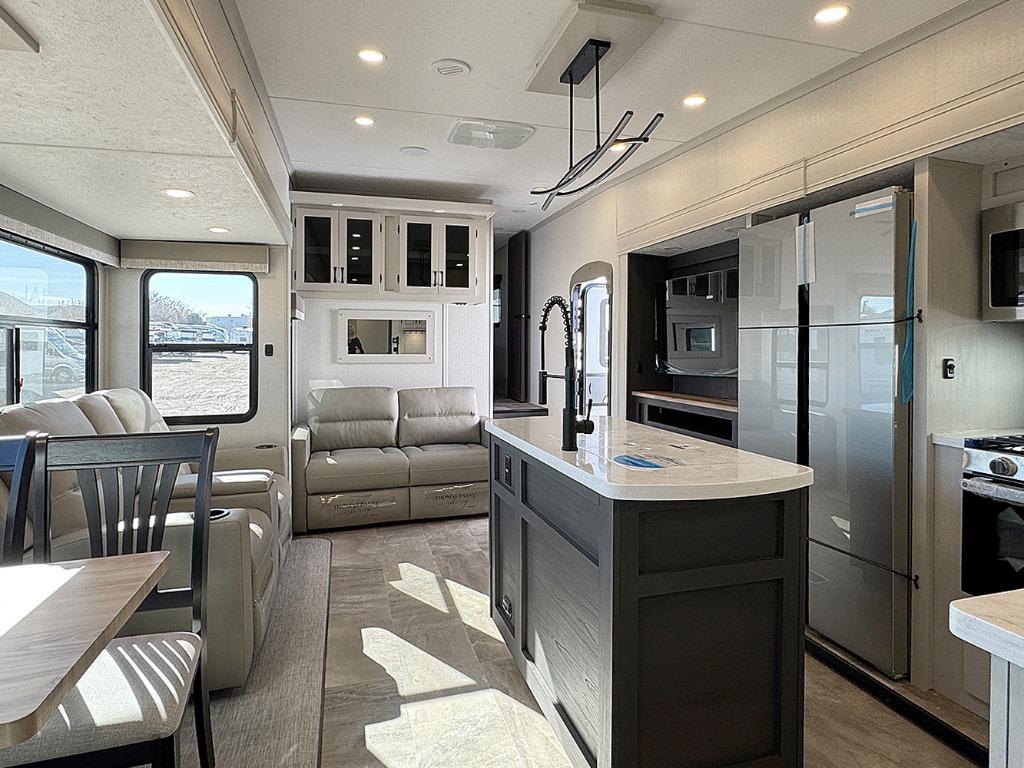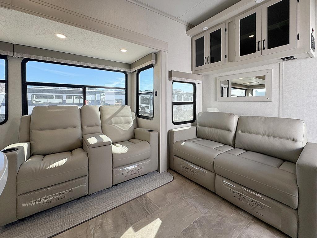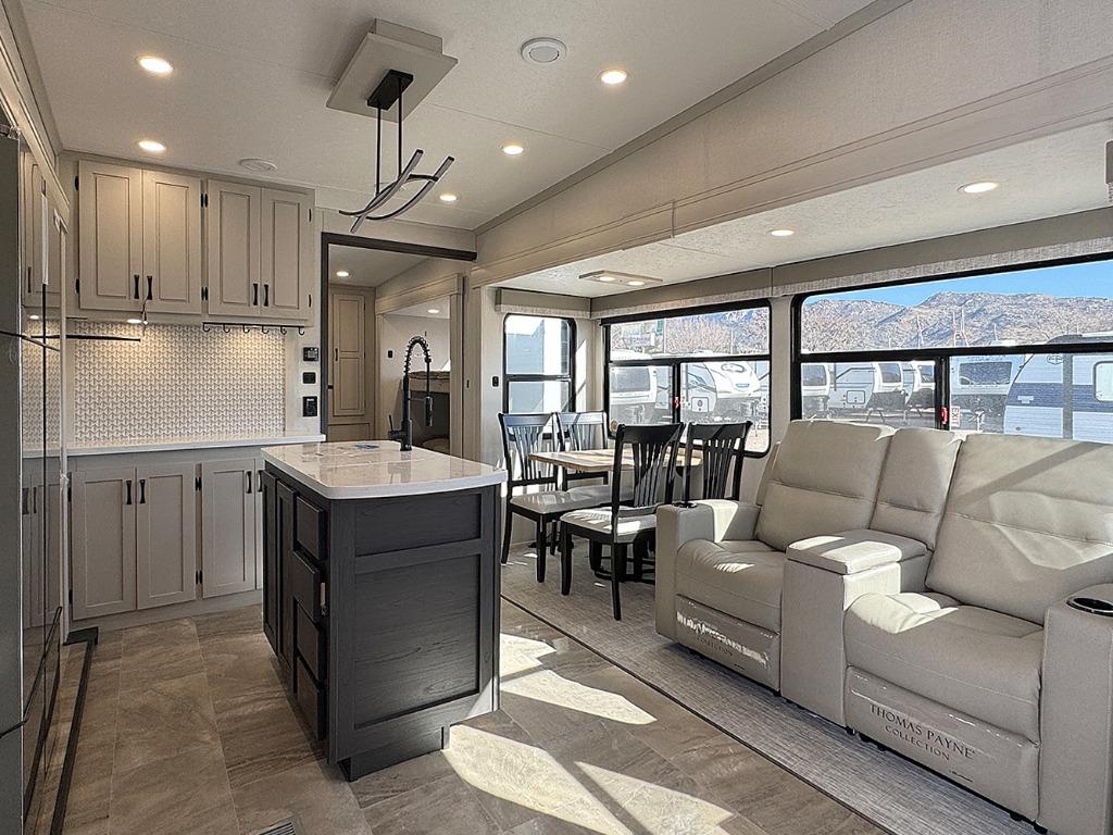 Rear Private Bunkhouse Suite, Kitchen Island, Theatre Seating, Shower with a Seat, Five Slides & Dual Entry Doors