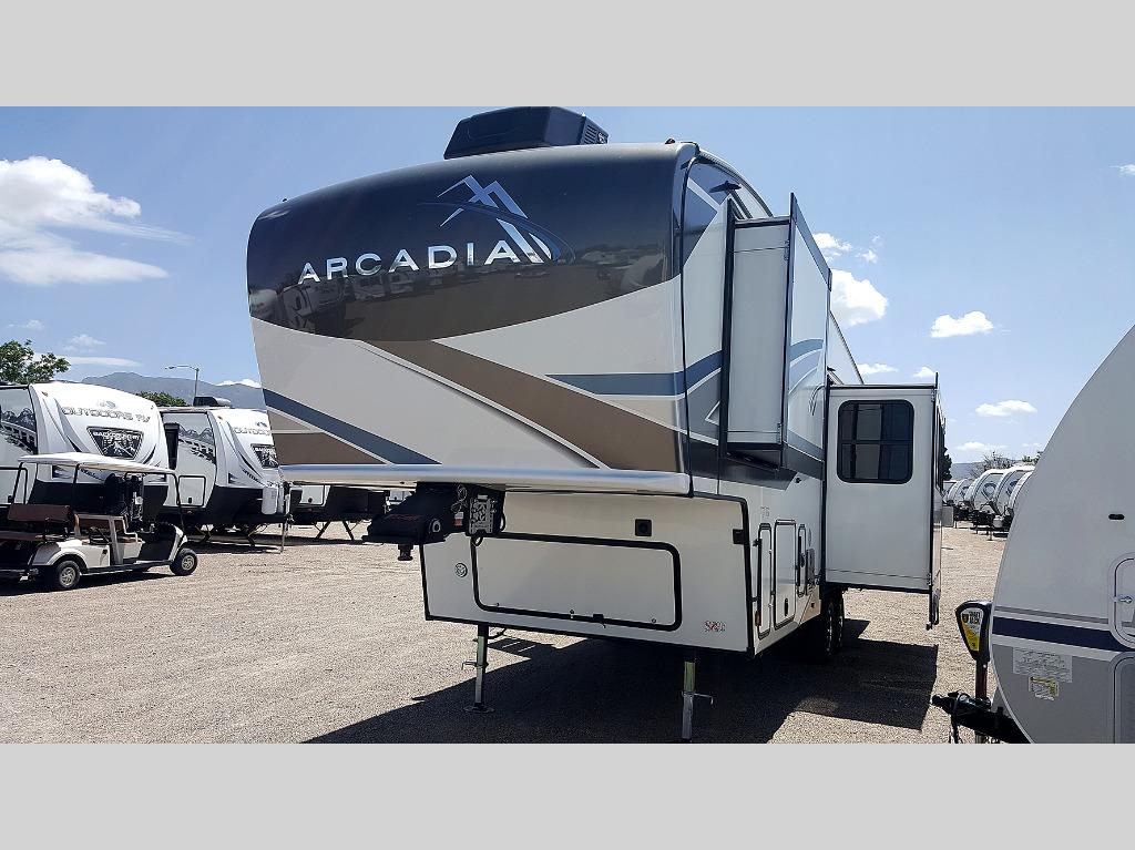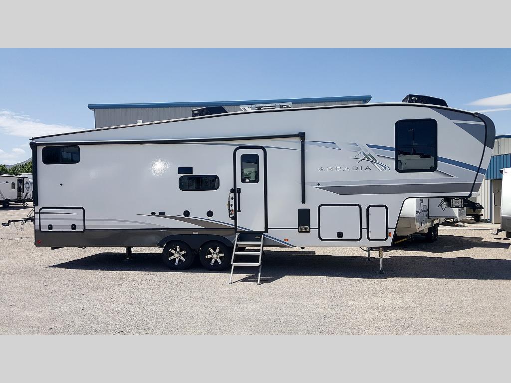 With any Arcadia Super Lite fifth wheel by Keystone, you will enjoy easy-to-tow lengths, unmatched storage, and oversized windows to let the outdoor views in. The structural I-beam frame will provide a strong foundation to your RV, and the Curt Performance Package means you can enjoy hassle-free towing. You will be able to camp year around thanks to the Peak Weather Package that includes a heated and enclosed underbelly, a 35K BTU furnace, and Keystone's exclusive HyperDeck floor that adds an additional layer of insulation to your floor. The interior will make you feel at home with residential hardware, seamless pressed countertops, residential Roman shades throughout, and ample storage space. Sometimes the best things come in smaller packages; choose a Arcadia Super Lite today!