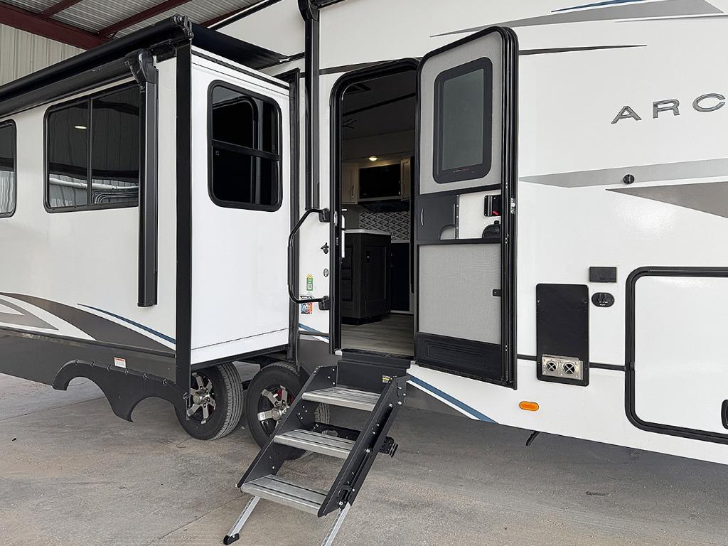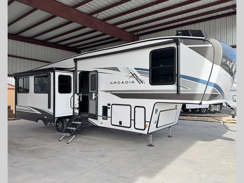 With any Arcadia Super Lite fifth wheel by Keystone, you will enjoy easy-to-tow lengths, unmatched storage, and oversized windows to let the outdoor views in. The structural I-beam frame will provide a strong foundation to your RV, and the Curt Performance Package means you can enjoy hassle-free towing. You will be able to camp year around thanks to the Peak Weather Package that includes a heated and enclosed underbelly, a 35K BTU furnace, and Keystone's exclusive HyperDeck floor that adds an additional layer of insulation to your floor. The interior will make you feel at home with residential hardware, seamless pressed countertops, black roller shades, and ample storage space. Sometimes the best things come in smaller packages; choose a Arcadia Super Lite today!
