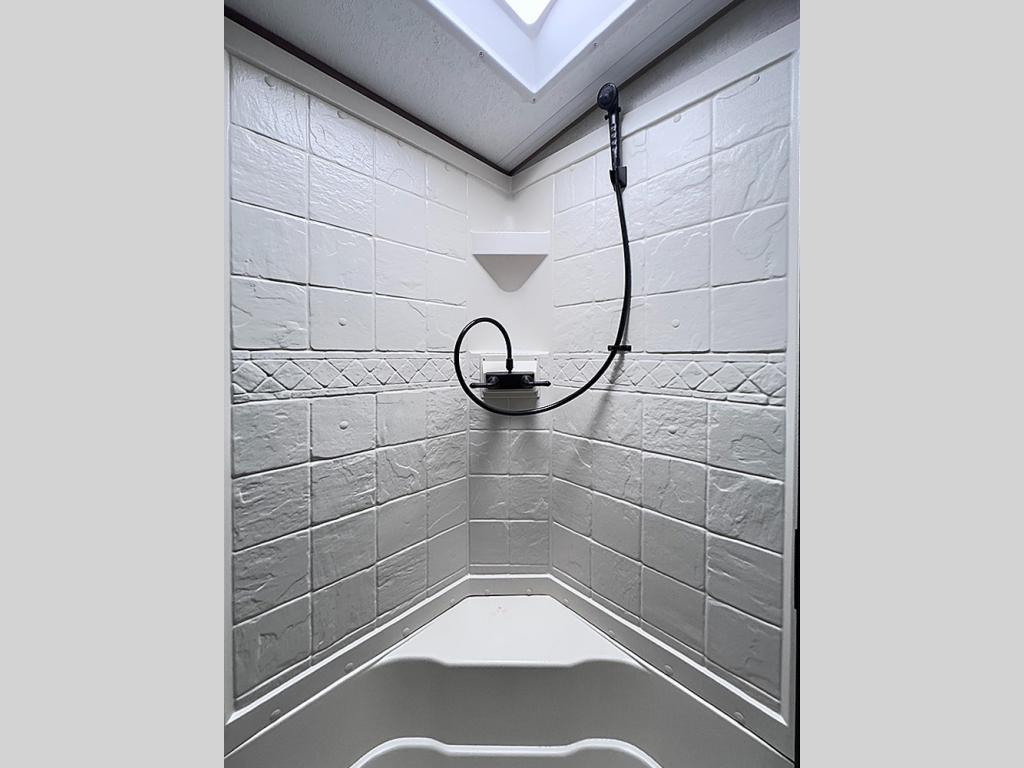Calling all adventure seekers, this Back Country allows you to choose your destination be it at a state park or off-grid, thanks to the generator and solar panel. You and your friends or family of four will have enough sleeping space inside after your outdoor fun is over. You can take turns getting cleaned up in the double entry bathroom, then relax on the sleeper sofa or the mountain dinette that is within a slide, which also includes the entertainment center and 40" TV. The second entry leads into the front bedroom where you will enjoy privacy, storage, USB ports and your own queen bed. The furniture doubles as sleeping space, and you might like to add the residential sofa option in place of the sleeper sofa if you prefer that type of comfort.