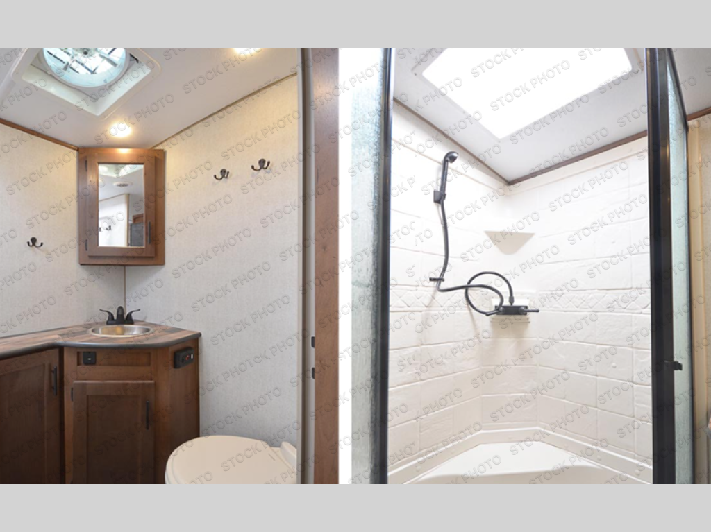 Camping trips are made complete when you have this travel trailer in tow. The rear mountain dinette provides a place to enjoy meals together, and the sleeper sofa slide out is close to the entertainment center for easy viewing of your movies. And if you're not needing the extra sleeping space, you can choose the optional residential sofa with built-in recliners! The chef of your group can prepare home-cooked meals in the kitchen, especially with a flip-up counter for more space. There is also a pantry, sunken range, 10 cu. ft. 12V refrigerator, plus a high-rise pull out faucet for easy clean up. The full bath is towards the front of the unit where you'll find the private bedroom, complete with a queen bed and plenty of storage space for clothes, shoes, and more!