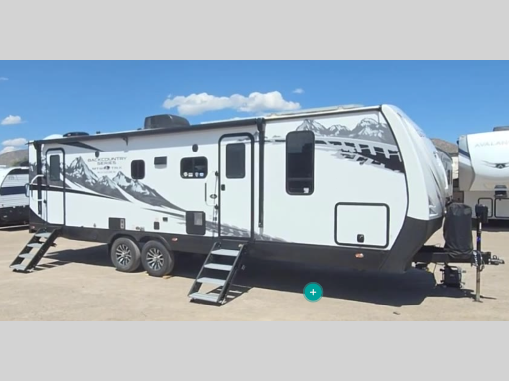Outdoor enthusiast love this Back Country for many reasons when they camp at local campgrounds, state parks, off-grid and even at friend's ranches. The handy garage storage door allows you to place items from the exterior into the interior for safe travels under the bunks. The double-size bunks and ladder allow four to sleep each night, the mountain dinette and sleeper sofa offer three to four more spaces, and the owners will enjoy their own queen bed in the front private bedroom. The kitchen offers full amenities, the swing-out 40" TV offers inside entertainment, and the full bathroom will keep everyone clean after a fun day outdoors. There is more, step inside to see it all!