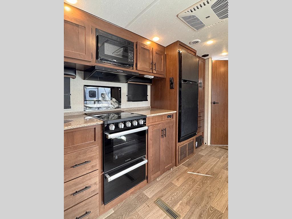 Each Back Country MTN TRX travel trailer by Outdoors RV is designed for camping off-grid plus you can go off-road, camp in national forest or even enjoy primitive style camping! Built with a custom-built cambered off-road HD 8' chassis, Mountain Extreme thermal pane windows, 16" Goodyear Endurance radial tires, plus more Climate Designed Four Seasons features allowing you to camp during any season. Some other standout features include a 24" Xtra tall power tongue jack, an HD full fiberglass front cap, and a Cummins Onan 3.6k on-board LP generator to keep your adventures going. Some of the interior highlights include a Mountain Comfort premium mattress, an easy access Home Defense bed safe, vaulted radius ceiling that provides approximately 5" of additional headroom for a spacious interior, a Bluetooth sound system, and LG solid surface kitchen countertops for style and easy care.