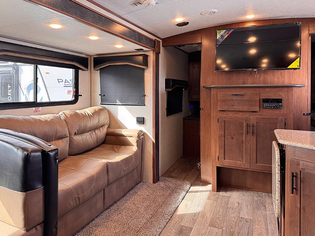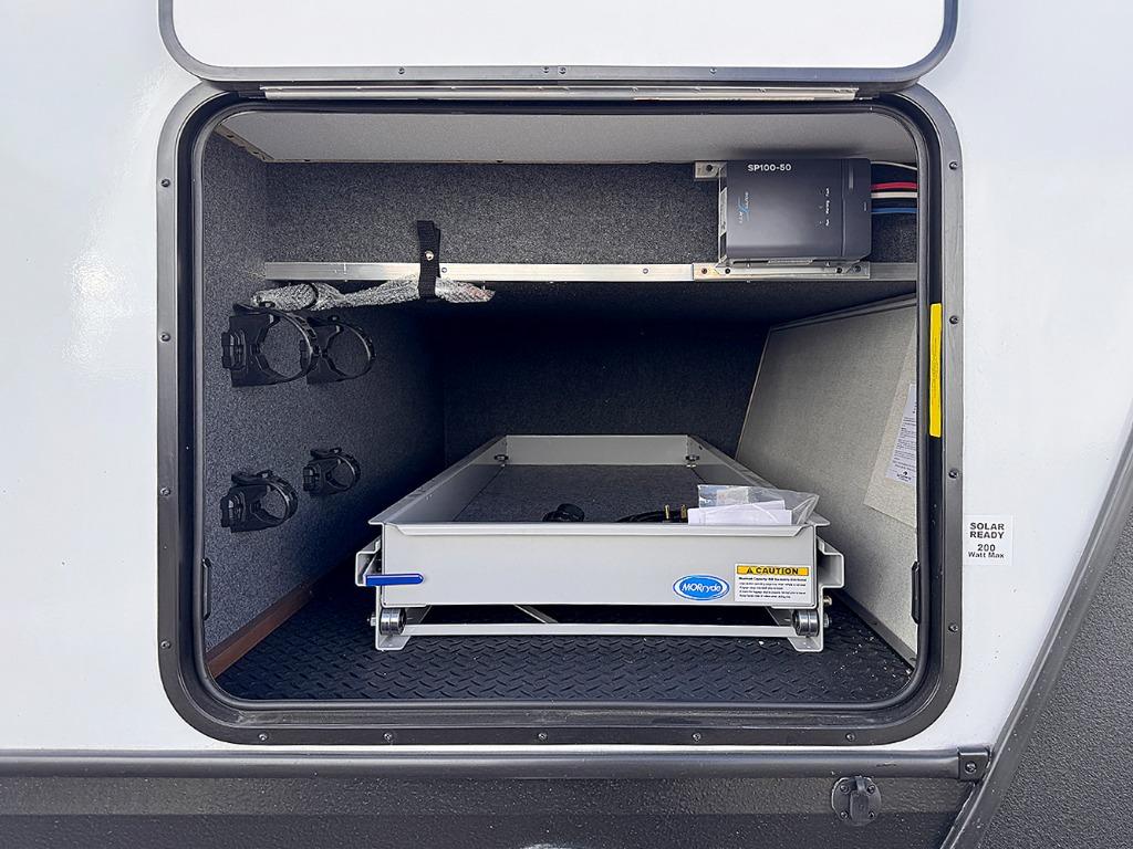 Double-Size Bunks, Dual Entry, Garage Storage, Door Sleeper Sofa, On-Board Generator & 400 Watt Solar Panel