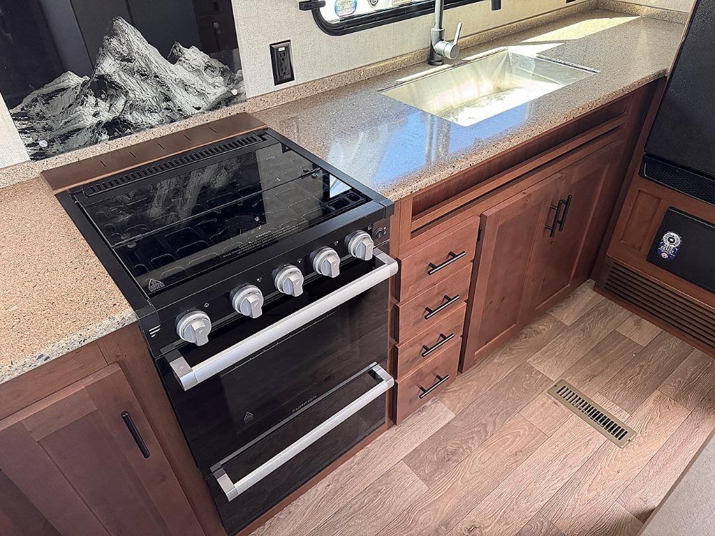 Each Creek Side Mountain Series travel trailer by Outdoors RV is designed for mountain tough four seasons camping for all your adventures. You'll find mountain extreme thermal pane windows, triple layered four seasons roof insulation, and a unique heated, insulated holding tank design. The compact design is compatible for light duty tow vehicles and smaller campsites, so you may not even need to purchase a new vehicle to start camping. Each model includes LG solid surface countertops, ultra leather furniture, and XL panoramic slide out windows for great outdoor views. These travel trailers also feature a mountain comfort premium mattress, 12V USB ports on either side of the bed, and XL bed nightstands for convenient storage.