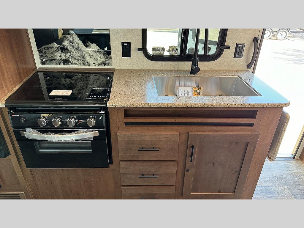 Each Creek Side Mountain Series travel trailer by Outdoors RV is designed for mountain tough four seasons camping for all your adventures. You'll find mountain extreme thermal pane windows, triple layered four seasons roof insulation, and a unique heated, insulated holding tank design. The compact design is compatible for light duty tow vehicles and smaller campsites, so you may not even need to purchase a new vehicle to start camping. Each model includes LG solid surface countertops, ultra leather furniture, and XL panoramic slide out windows for great outdoor views. These travel trailers also feature a mountain comfort premium mattress, 12V USB ports on either side of the bed, and XL bed nightstands for convenient storage.