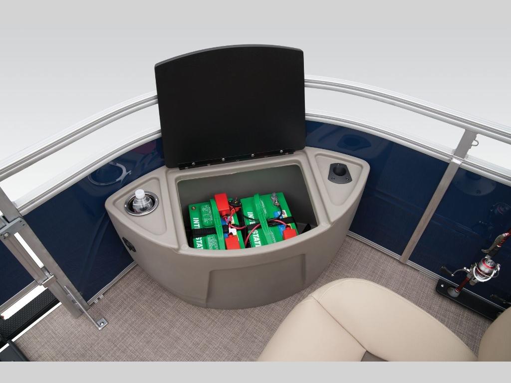 You'll love every minute spent on this spacious pontoon! The two aerated livewells feature 18 gallons total and are perfect for your daily catch, and you'll find convenient rod storage so no one will trip over them. Once you're out in the middle of the lake, crank up the tunes on the Wet Sounds® stereo w/Bluetooth® & two 6.5" upholstery speakers, plus there is a USB charging receptacle and recessed mobile phone cubbie. The driver will love the deluxe soft-touch sport steering wheel and the below-console cooler/storage space for their belongings. This model also includes an aft storage net, LED navigation lights, three removable folding fishing chairs, plus many more conveniences!