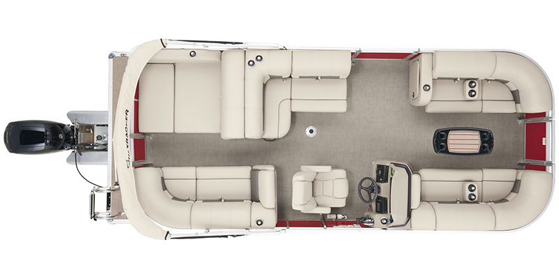 The 2025 Sun Tracker Party Barge 22 RF DLX is built for relaxation and entertainment. The bimini top provides shade on sunny days, while the Bluetooth audio system sets the mood with your favorite tunes. Grab a seat on one of the comfortable chairs at the helm and enjoy the smooth ride as you navigate the waterways.