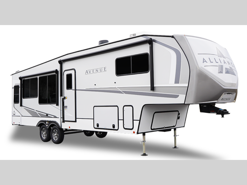 A benchmark chassis creates a space saver upper deck with each one of these Avenue All-Access fifth wheels by Alliance RV! The 101 in. wide-body construction gives you more room to walk around and the flush slide out floors throughout prevent any tripping. There are Azdel composite sidewalls inside and out, and a seamless fully walkable PVC roof for extreme durability and zero maintenance. You are sure to love no carpet throughout making each Avenue All-Access easy to clean and allergen free, not to mention pet friendly. You can maximize your space throughout with innovative storage solutions like the hidden storage behind the TV, inside the end tables, ottoman, and dinette chairs. These units also include the OTG Solar Package with a 200 watt solar panel, 15 amp MPPT charger, multiple outlets, and more to keep you powered up!