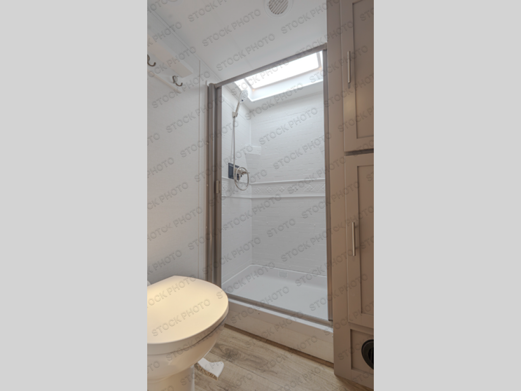 For the couple that enjoys adventures, this rear living coach has everything you need to travel comfortably and take along a couple of friends! The front private bedroom has a queen bed with nightstands on either side for your personal belongings, and a wardrobe to keep your clothes looking nice. Freshen up each morning in the full bathroom with a 30" x 36" shower, and grab a towel stored close by in the linen closet. Now that you're ready for the day, you can head to the kitchen and create a hearty breakfast with the full kitchen amenities. You will appreciate having a 10 cu. ft. 12V refrigerator and three burner cooktop, plus there is a center island with plenty of counter space and a sink to make food prep even easier. Spend your evenings in true relaxation in the dual recliner theater seats across from the swing mount 50" HDTV with hidden storage behind. You will also love the pantry and hutch in the kitchen area for storing all of your dishes and non-perishables. Dine at the floating table with two chairs along with a moveable ottoman featuring storage.