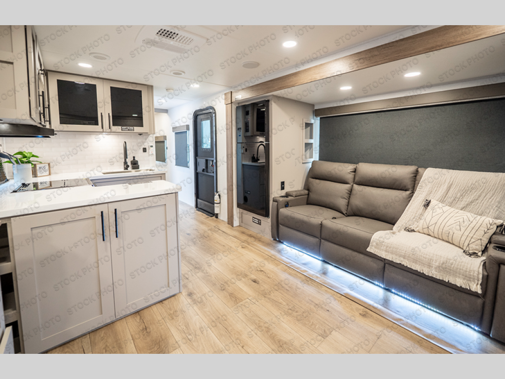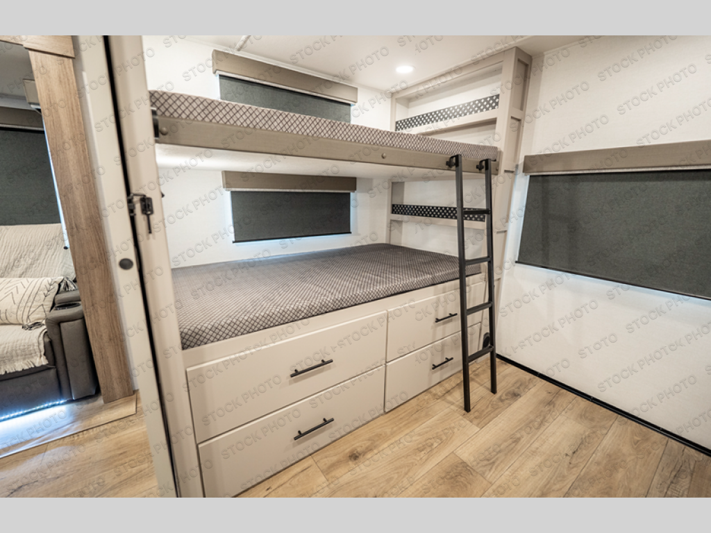 U-Shaped Kitchen, Rear Private Bunkhouse, Double Slides, 10 Cu. Ft. 12V Refrigerator & Outdoor Griddle