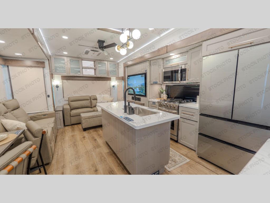 The Paradigm fifth wheels by Alliance RV are functional, high-quality, and luxurious for an unforgettable camping experience. There are three A/C units and a 40K BTU furnace to keep you comfortable year around, and you'll appreciate additional convenient amenities, like the all-in-one enclosed/heated utility center and the color coded and numbered wiring. A Helux Series coil spring pin box comes standard for hassle-free towing, along with Curt 8,000 lb. axles. You'll love the kitchen with its LG solid surface countertops and Lusso range, plus there is LED motion lighting in the pantry and a Maxx fan with a rain sensor to keep everything fresh when making dinner. Each model also includes an HD Smart TV in the living room and bedroom. And of course there are a variety of options you can choose from to further customize your fifth wheel; dual pane windows, Super Solar Plus, slide out awning toppers, and generator prep or a generator to name a few!