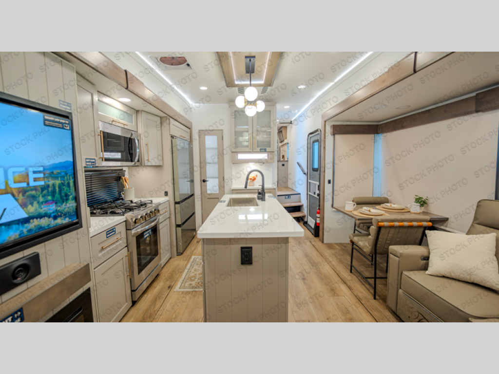 The Paradigm fifth wheels by Alliance RV are functional, high-quality, and luxurious for an unforgettable camping experience. There are three A/C units and a 40K BTU furnace to keep you comfortable year around, and you'll appreciate additional convenient amenities, like the all-in-one enclosed/heated utility center and the color coded and numbered wiring. A Helux Series coil spring pin box comes standard for hassle-free towing, along with Curt 8,000 lb. axles. You'll love the kitchen with its LG solid surface countertops and Lusso range, plus there is LED motion lighting in the pantry and a Maxx fan with a rain sensor to keep everything fresh when making dinner. Each model also includes an HD Smart TV in the living room and bedroom. And of course there are a variety of options you can choose from to further customize your fifth wheel; dual pane windows, Super Solar Plus, slide out awning toppers, and generator prep or a generator to name a few!