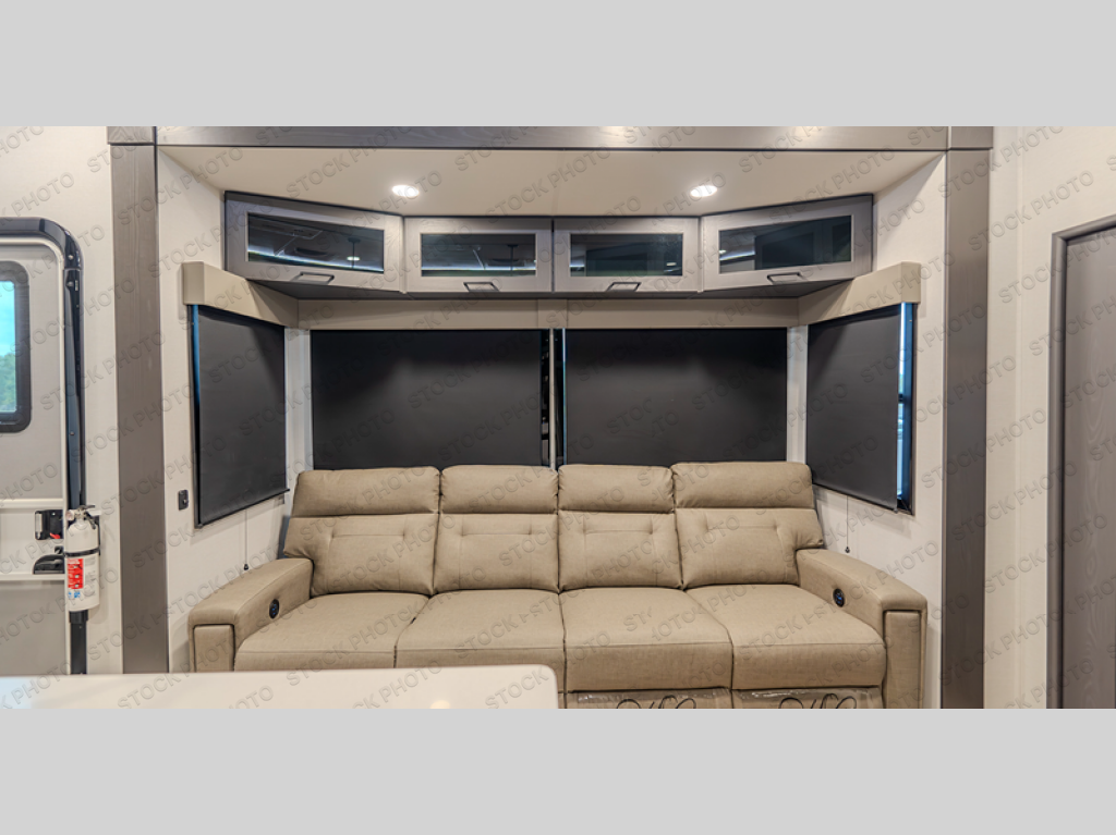 You can bring your toys with you wherever you go with any one of these Alliance RV Valor toy hauler fifth wheels! They are adventure-ready with a quality build from the walk on roof with seamless PVC roof covering to the commercial grade vinyl flooring and MorRyde CRE3000 suspension system. The Performance Running Gear package comes with a 101" wide-body benchmark chassis platform, 7,000 lb. Dexter axles, and a space enhancing drop frame storage compartment to pack in all your riding gear. You can even go off-gridding thanks to the Off the Grid Pack that has two 400 watt solar panels, generator prep, a 40 amp charge controller, and a 100 amp hour lithium iron phosphate battery. Some of the interior comforts you will enjoy are the hardwood cabinet doors and drawers, solid surface kitchen countertops, and commercial grade vinyl flooring with no carpet to make clean up a breeze. The Valor toy haulers are also the Masters of 12 Volt with USB charging station throughout, a stainless steel refrigerator, and more 12 volt features to make camping hassle-free!