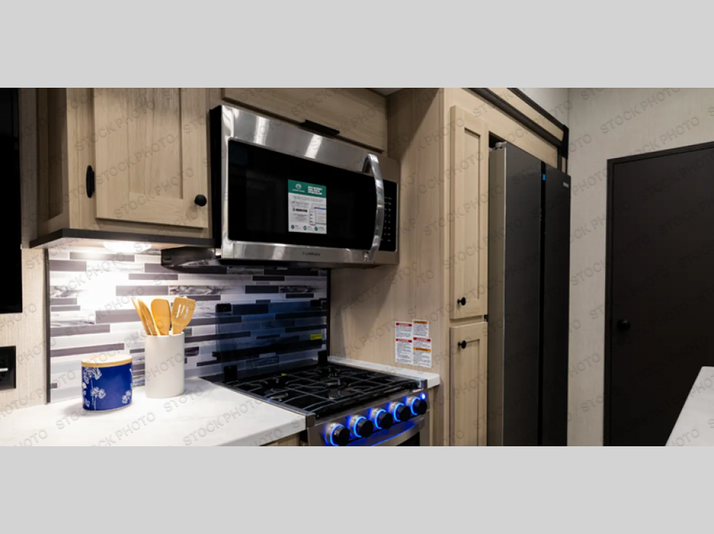 With any Cardinal fifth wheel by Forest River, you will enjoy affordable luxury at every turn. These models are constructed with residential fiberglass insulation in the roof and floor, a heated and enclosed underbelly armor, and a vacuum bonded, welded aluminum structure for added strength and durability. You will also find seamless roto-cast holding tanks, an outdoor shower, and 4-point auto leveling for quick and easy setup. There are carpet-free living spaces, residential backsplash, motion lighting throughout, and many more comforts!