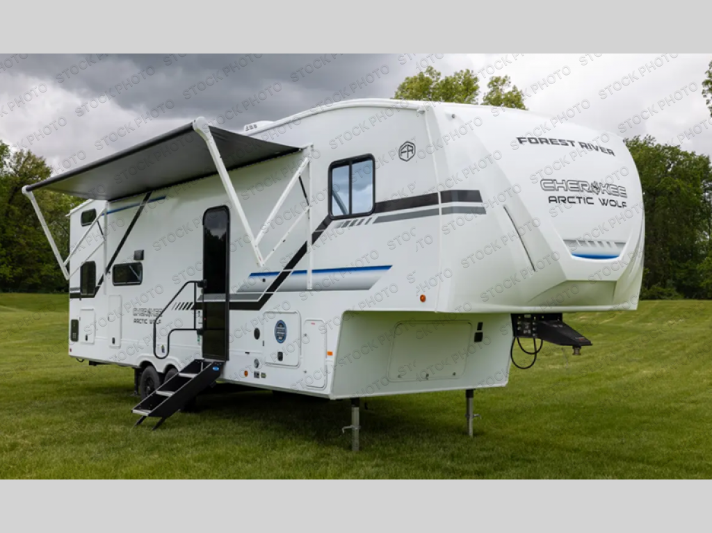 You'll have the very best time tackling outdoor adventures with the Forest River Cherokee Arctic Wolf fifth wheel! Each model has been constructed with a “ToughBend” rigid skirt metal design, Leash Latch pet safety technology, an outside shower with hot/cold water, and a 1x engineered wood “SuperTruss” roof structure with 3/8" decking for added durability. There is also an automatic leveling and stabilization system, plus 12V heat pads on all holding tanks with help withstand colder temperatures. Inside, you'll love the solid surface kitchen countertops, along with a carpetless floor design, and fully adjustable, slow rise, blackout roller shades. The on-demand tankless hot water heater will provide endless hot water and the central A/C unit with Quick Cool will ensure your comfort during those hot summer camping months. There are many more stand-out features found on these fifth wheels; check them out!