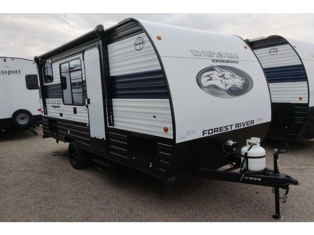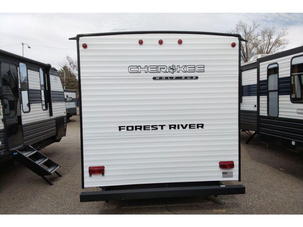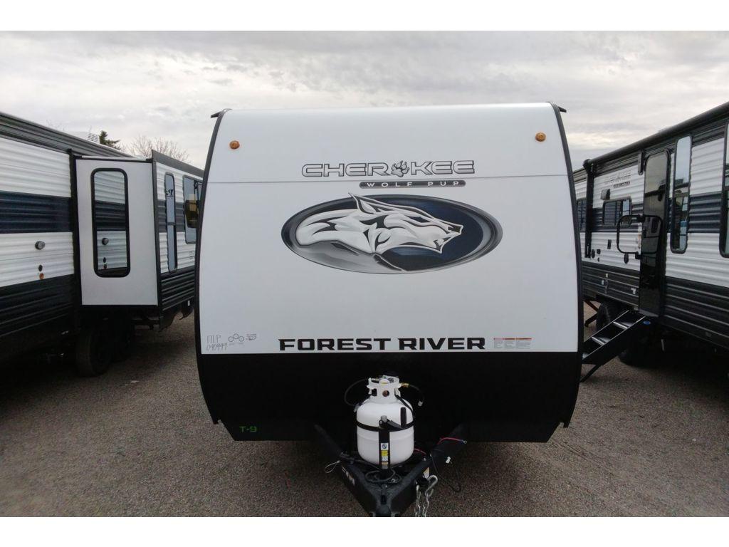 Each one of these Forest River Cherokee Wolf Pup travel trailers and toy hauler are lightweight and easy to tow! They are fully self-contained with ample tank capacities, an abundance of storage space, and filled with at home amenities. The full bath and kitchen amenities will make life at the campground easier than ever, and the outdoor patio awning will provide an inviting outdoor space!