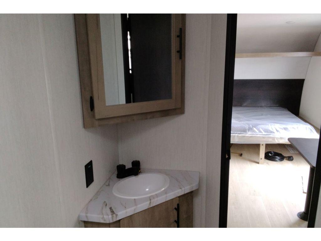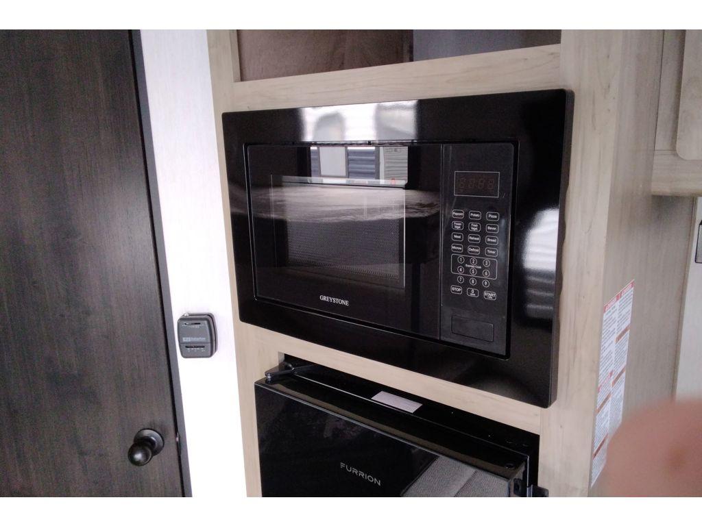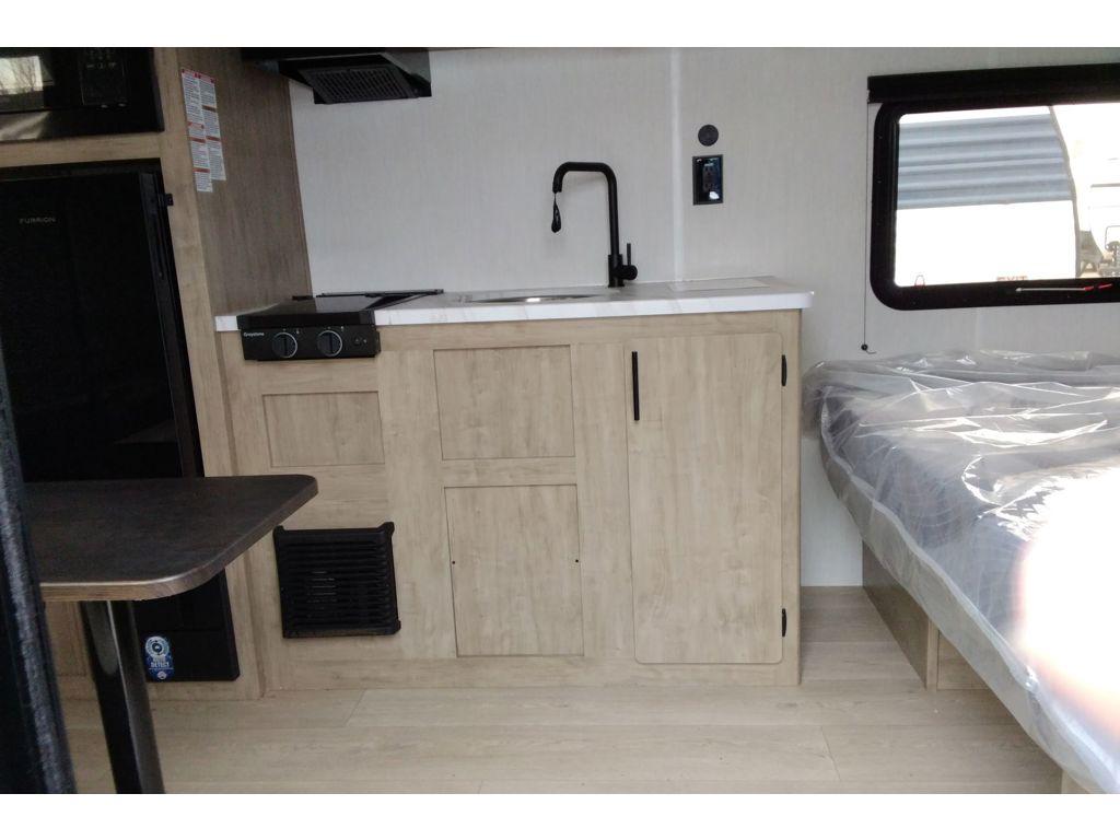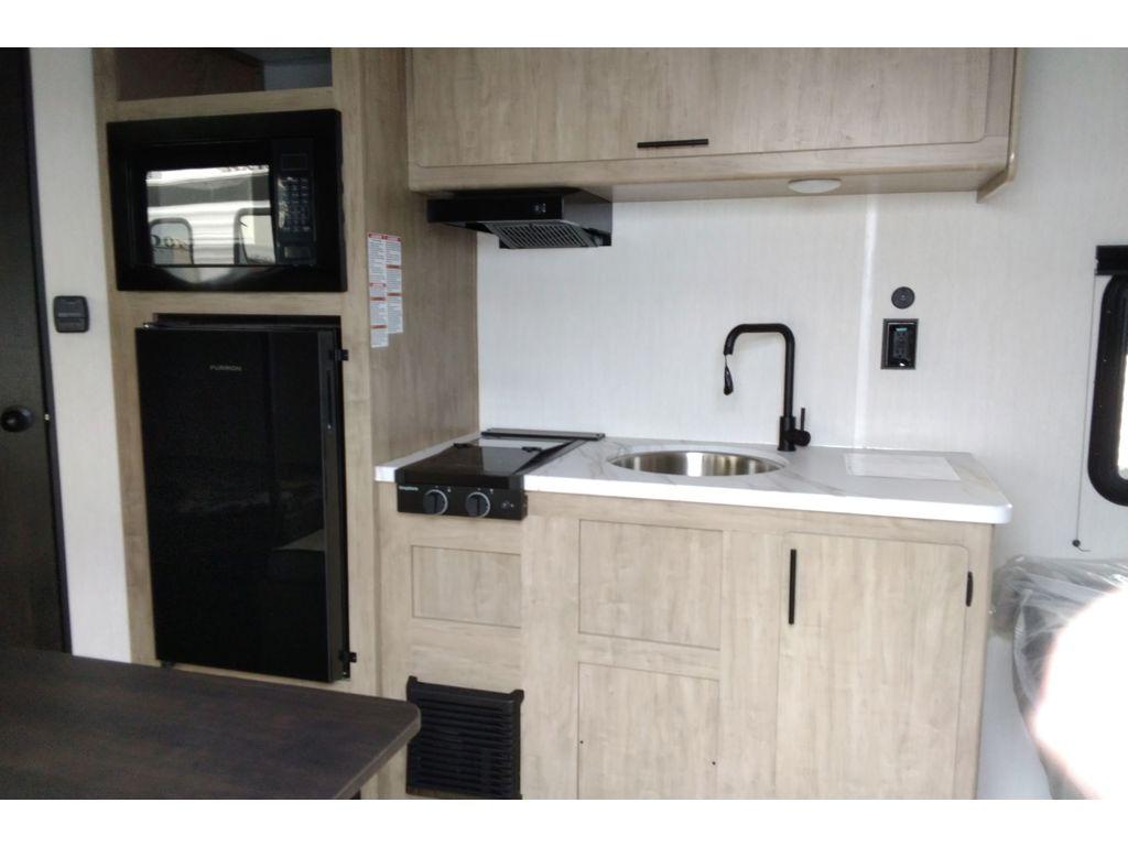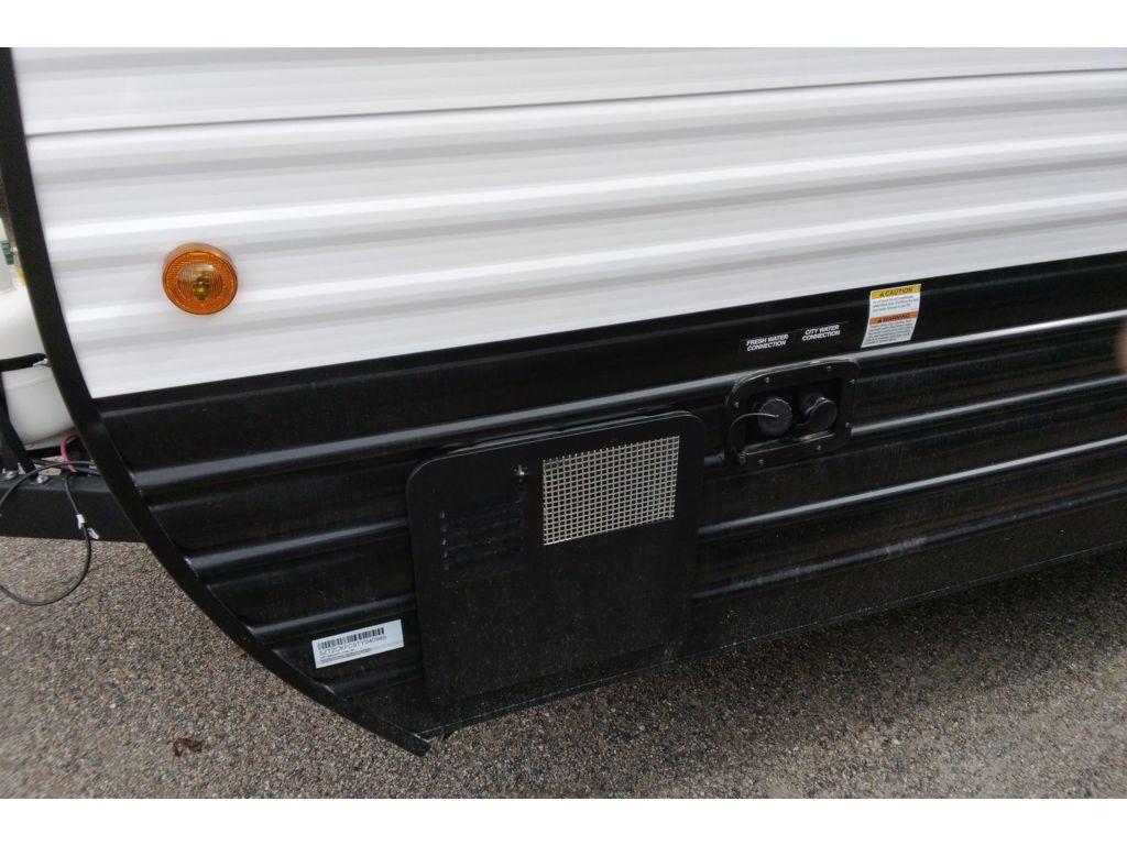 Create amazing memories in this stunning travel trailer! It is perfect for at least six people, thanks to its multiple sleeping spaces. The spacious double-sized bunk beds are ideal for kids or guests, while the plush queen-sized bed provides a restful retreat for adults. The full bathroom is equipped with everything you need for a comfortable stay, and the kitchen features a refrigerator and microwave for you to go wild in the kitchen. You can also gather around the dinette for meals and snacks, or relax in the evenings under the protection of the exterior awning. In addition, ample overhead cabinets provide storage for cookware, dishes, and essentials, keeping your trailer tidy and organized.