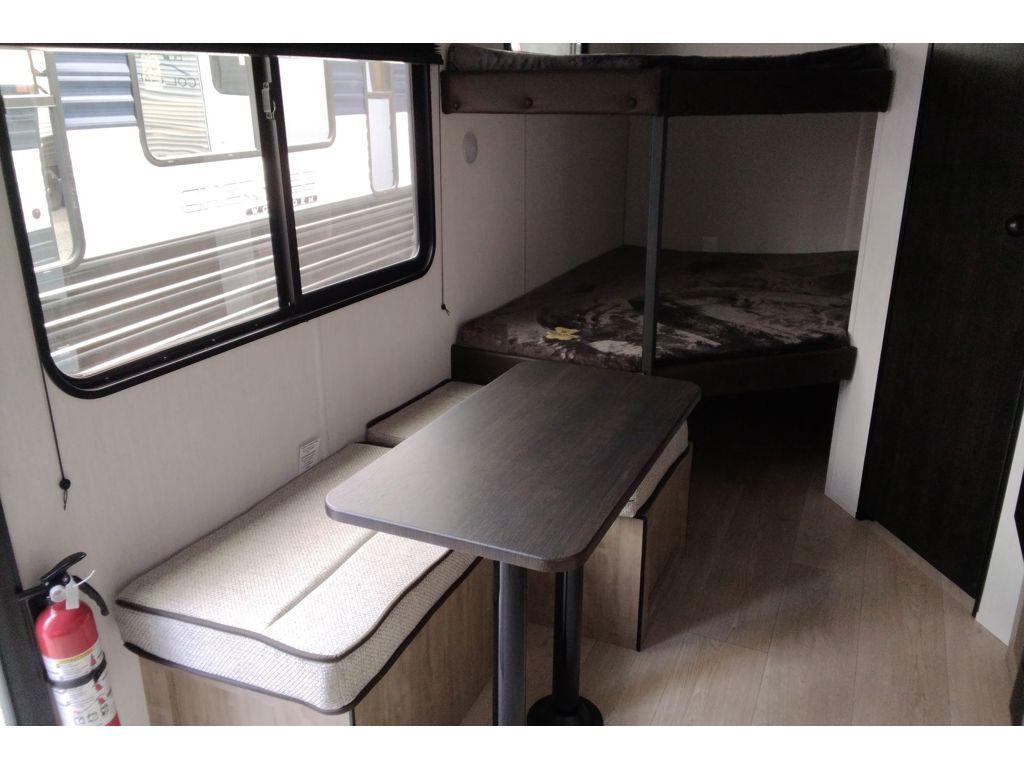 Double-Size Bunk Beds, Queen Bed, Dinette Exterior Awning & Outside Storage