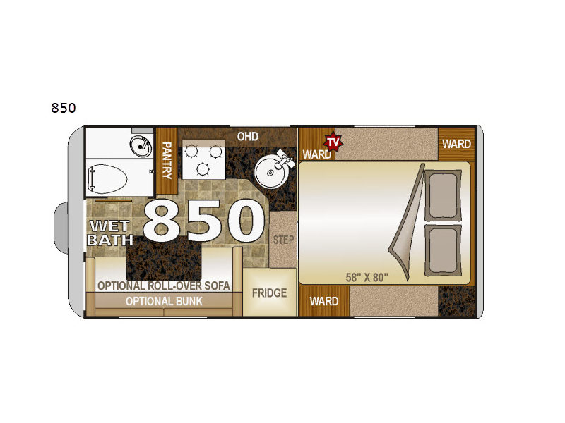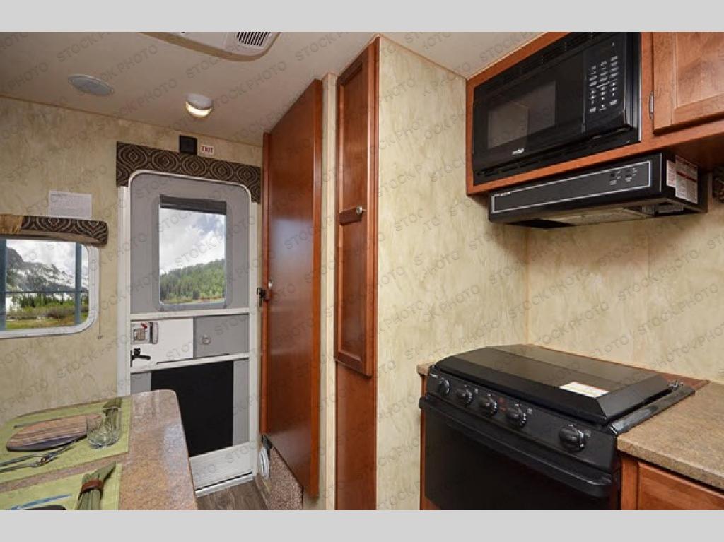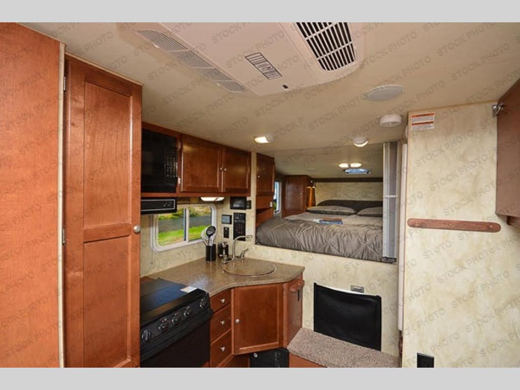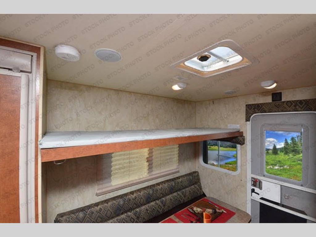 Step inside this Wolf Creek 850 truck camper by Northwood and see just how easy your next camping trip will be. There is a rear wet bath to your left as you enter that includes a toilet, a sink, and a shower. On the right side find a U-shaped dinette with an optional roll-over sofa and optional bunk above. The kitchen area offers everything that you need to prepare and cook light meals and snacks while on the go. There is a pantry to store your canned and dry goods in, a refrigerator is next to the dinette for perishables, and a three burner range plus round kitchen sink for cooking and cleaning up. You will also find overhead cabinets for dishes and things. Sleep comfortably in front on the 58" x 80" cab over bed. There are three wardrobes, plus a space to add a TV if you like. If you choose the short bed option, it is also generator ready so you can add the optional 2.5 Onan LP generator if you wish, plus so much more!