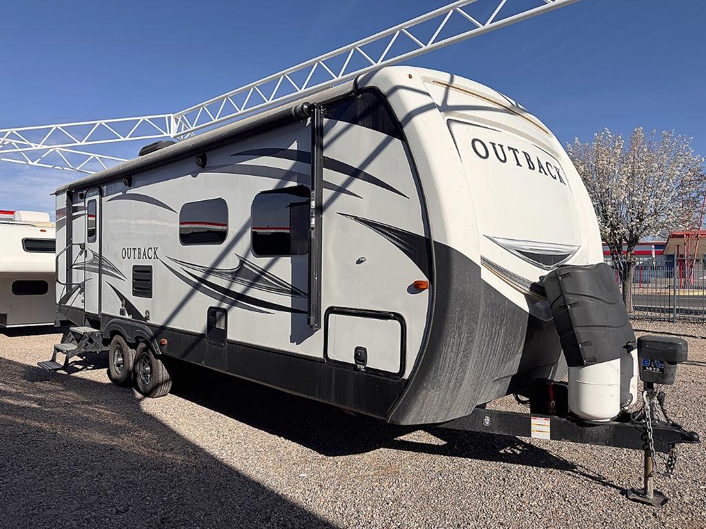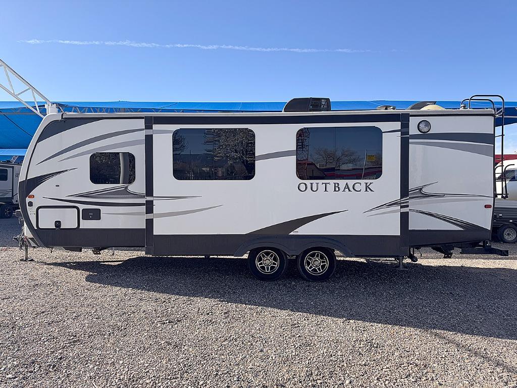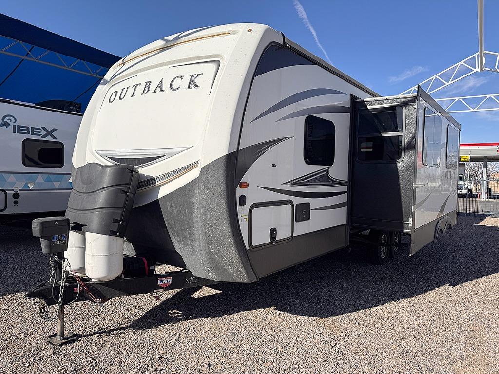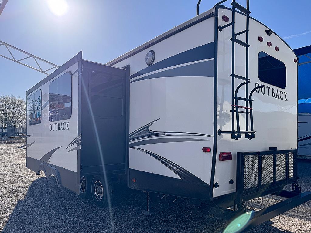 Make lasting memories with the family in this Outback travel trailer! The slide-out sofa sleeper and booth dinette, along with the queen-size bed in the private bedroom, are what allow this trailer to sleep five people comfortably each night, and the large bathroom that is located in the rear portion of this trailer adds an extra bit of privacy as you are rinsing off in the 30" x 40" shower each morning. Throughout the central living area you will love the open space where you can prepare meals in the kitchen or lounge in front of the crackling fireplace, and that is all made possible because of a single slide out that has been incorporated into the design.