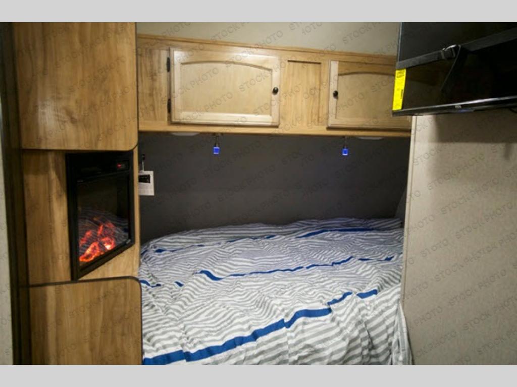 When you are ready for some relaxation with endless outdoor views, hook up this Freedom Express Pilot travel trailer to your family tow vehicle and head out to your favorite spot. This model offers plenty of conveniences and comfort for a weekend or week-long trip. The chef in the family can heat leftovers in the microwave or cook on the two-burner cooktop which includes a butcher block cover that will come in handy while you are chopping up veggies, and if you need to watch the big game, the LED TV is easily viewable from almost anywhere. Having a full bathroom allows you to camp off grid, and the skylight above the shower will brighten your spirits each morning as you get ready for the day. You will also appreciate the LED light strip in the exterior pass-through storage because it makes loading your larger camping gear during the nighttime easy.