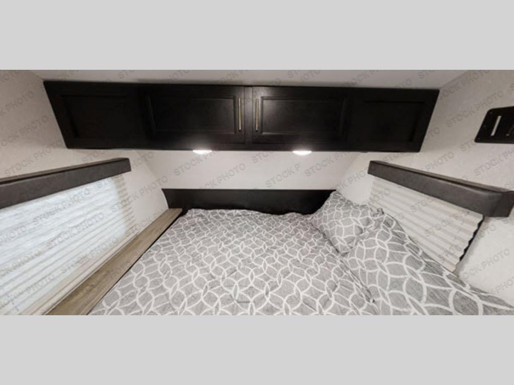 Imagine your kids on the rear bunk beds in this Cherokee Wolf Pup travel trailer while you enjoy the front queen bed before everyone gets up to make breakfast and head out for a hike. The kitchen includes a high-output cooktop and microwave, as well as a refrigerator to store your leftovers and a sink to wash the dishes. You will find storage in the overhead cabinets, and there is a shelf by the queen bed. Your hiking gear can also be stowed out in the outside storage.