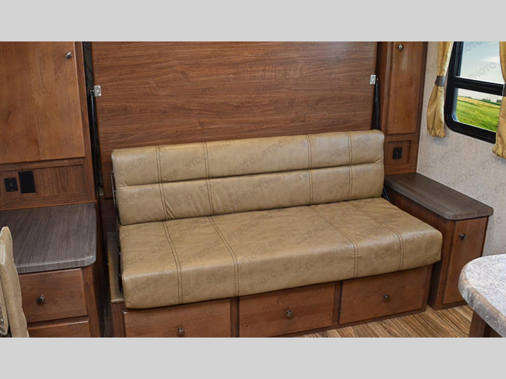 A family of three or four will love camping in this trailer with the versatile front roll over sofa and 60" x 74.5" Murphy bed, and the slide out with a U-shaped dinette and wardrobe. The dinette converts to 45" x 85" sleeping area for your child or smaller children at night making it versatile for your needs. You will find three wardrobes for your clothing, a pantry for your dry goods, and exterior storage for your outdoor gear. The full bathroom will keep you refreshed before bedtime, and the kitchen offers a residential microwave, a range and large fridge.
